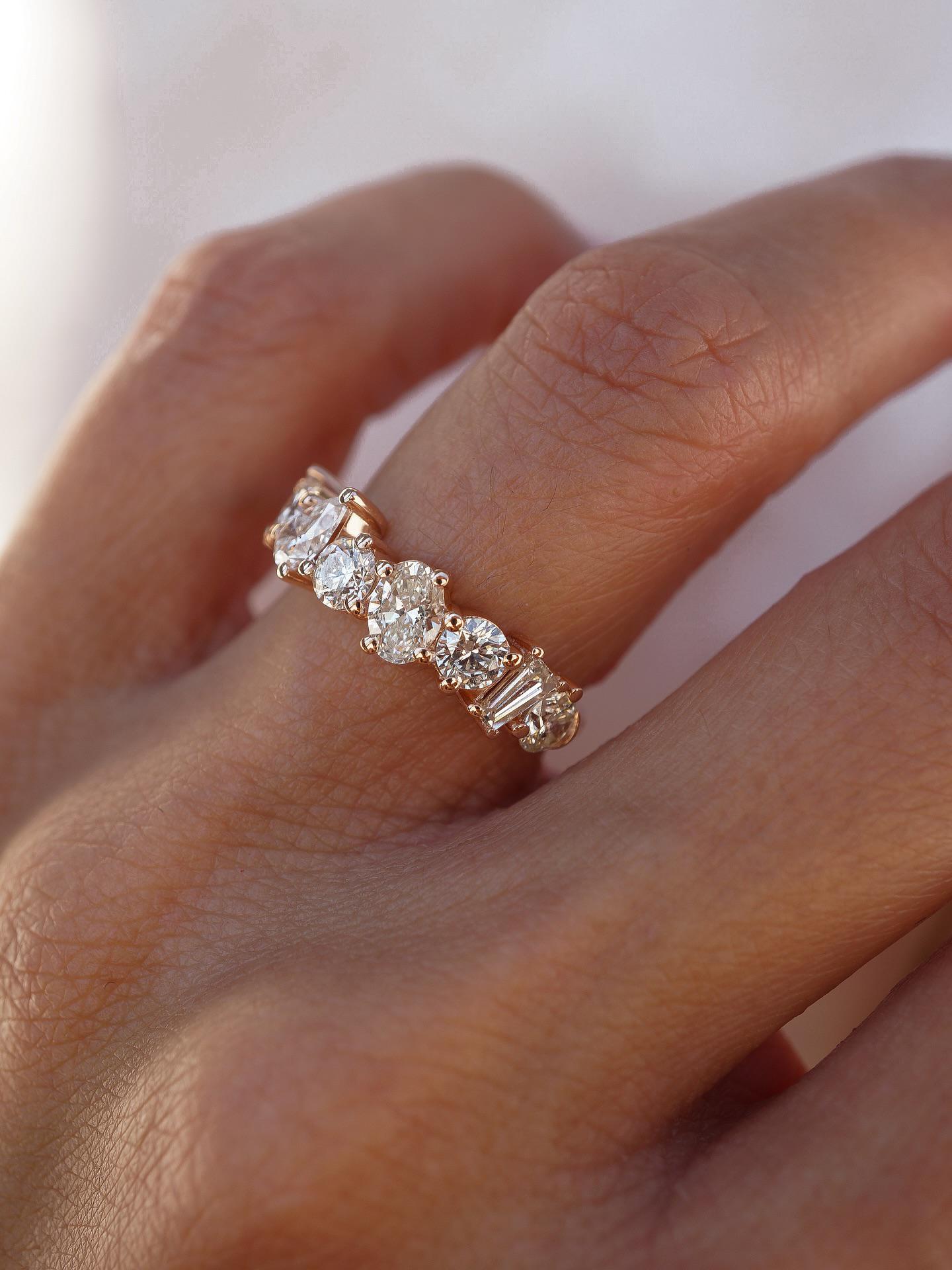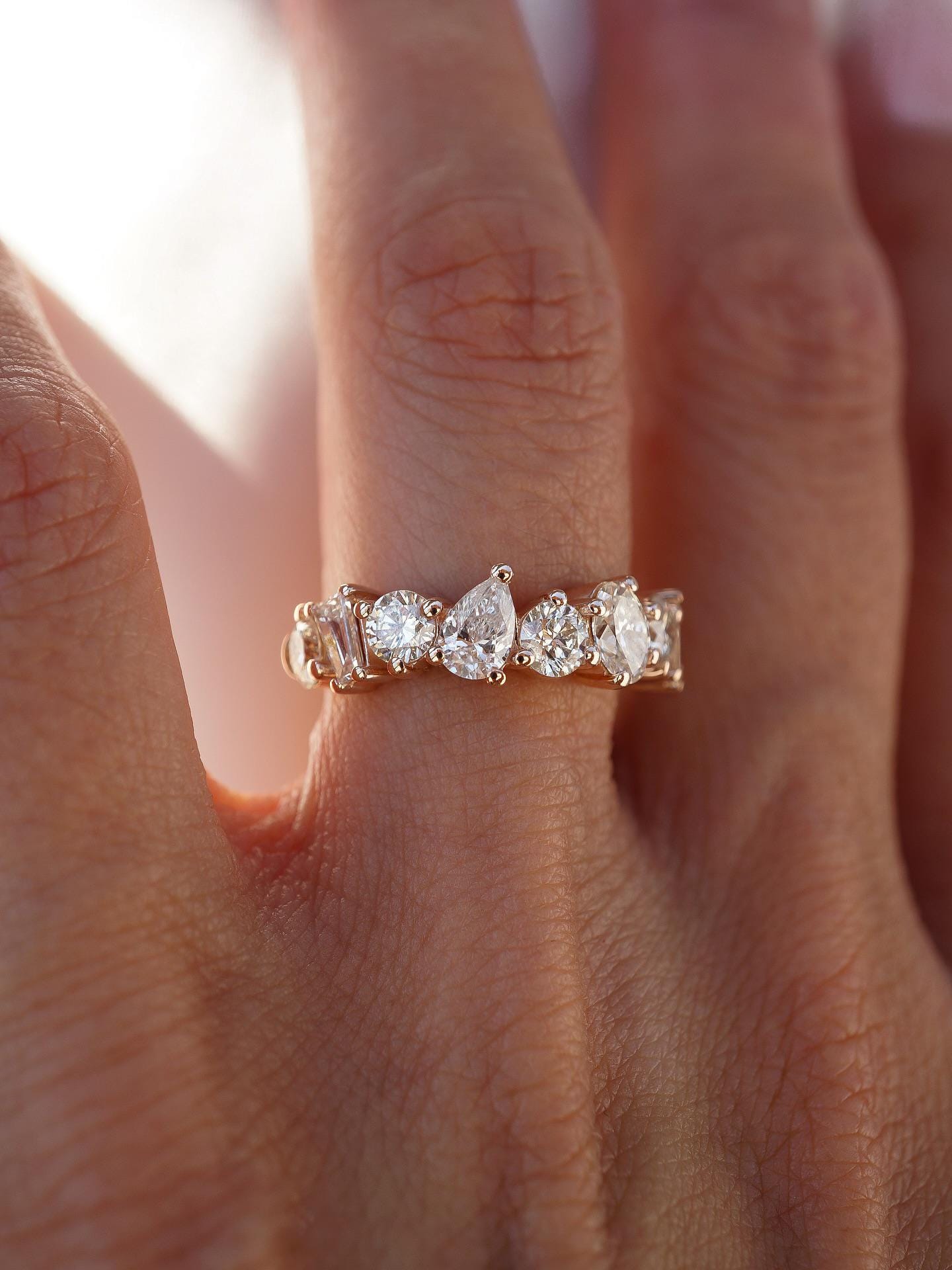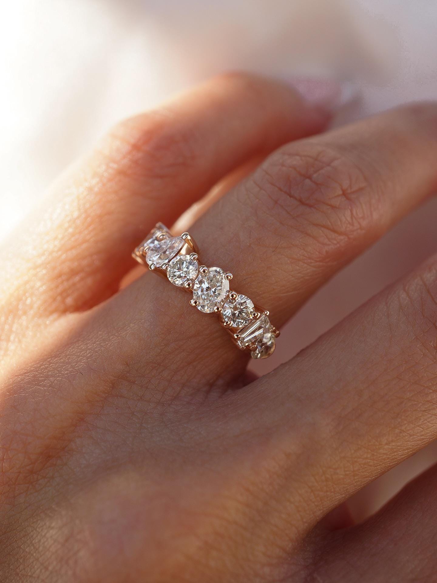 Diamond Wedding Band for Women, Mixed Cut Diamond Band Ring, Rose Gold Anniversary Ring, Handmade Diamond Eternity Band, Multi Shape Ring