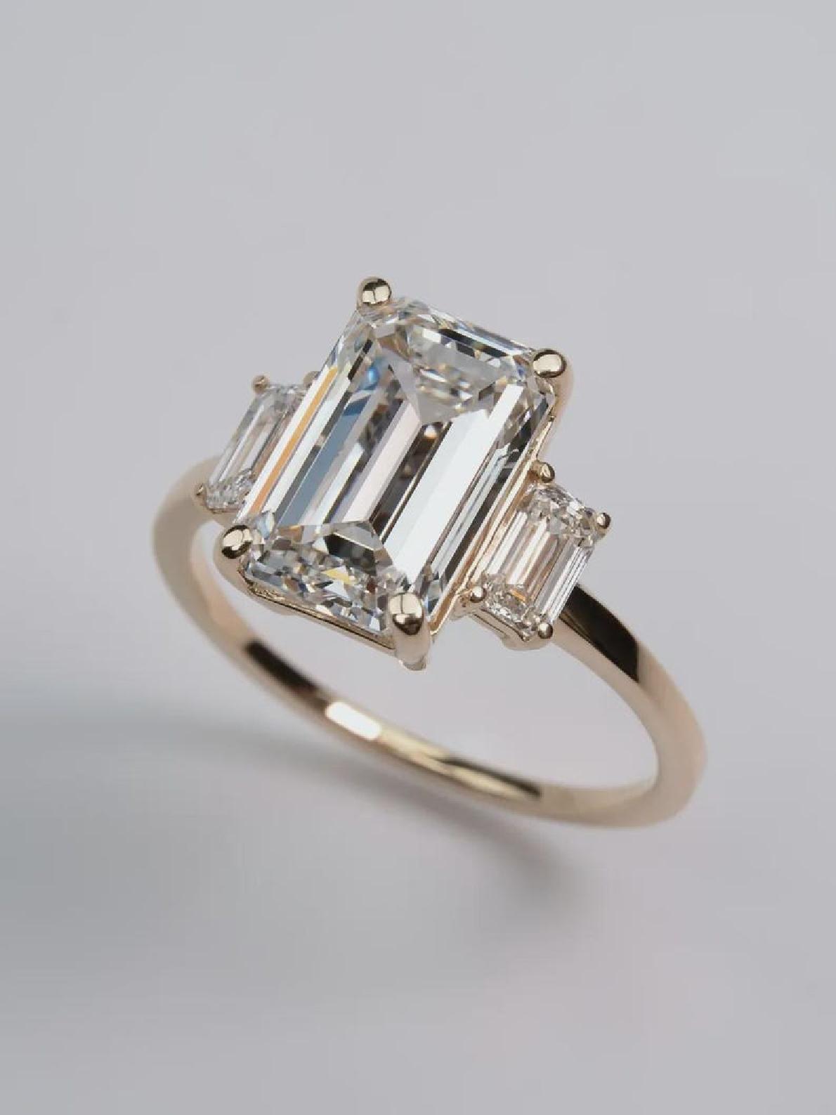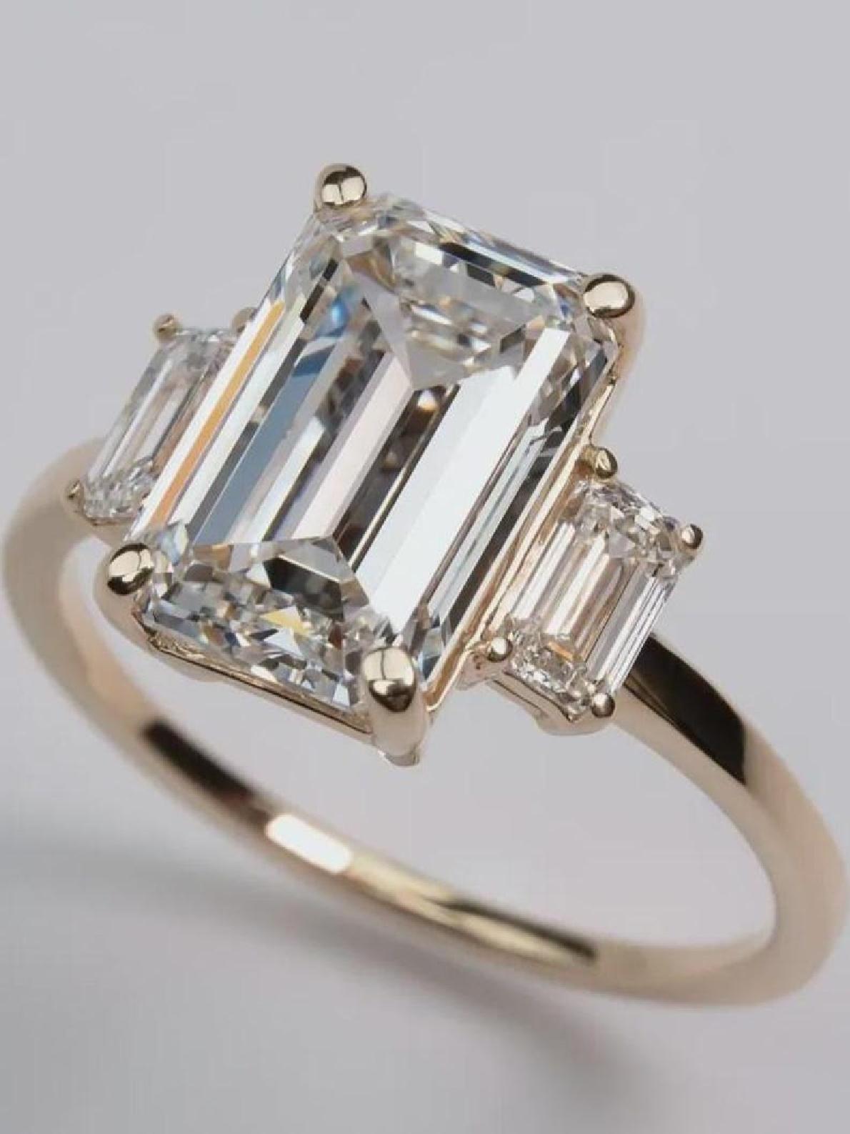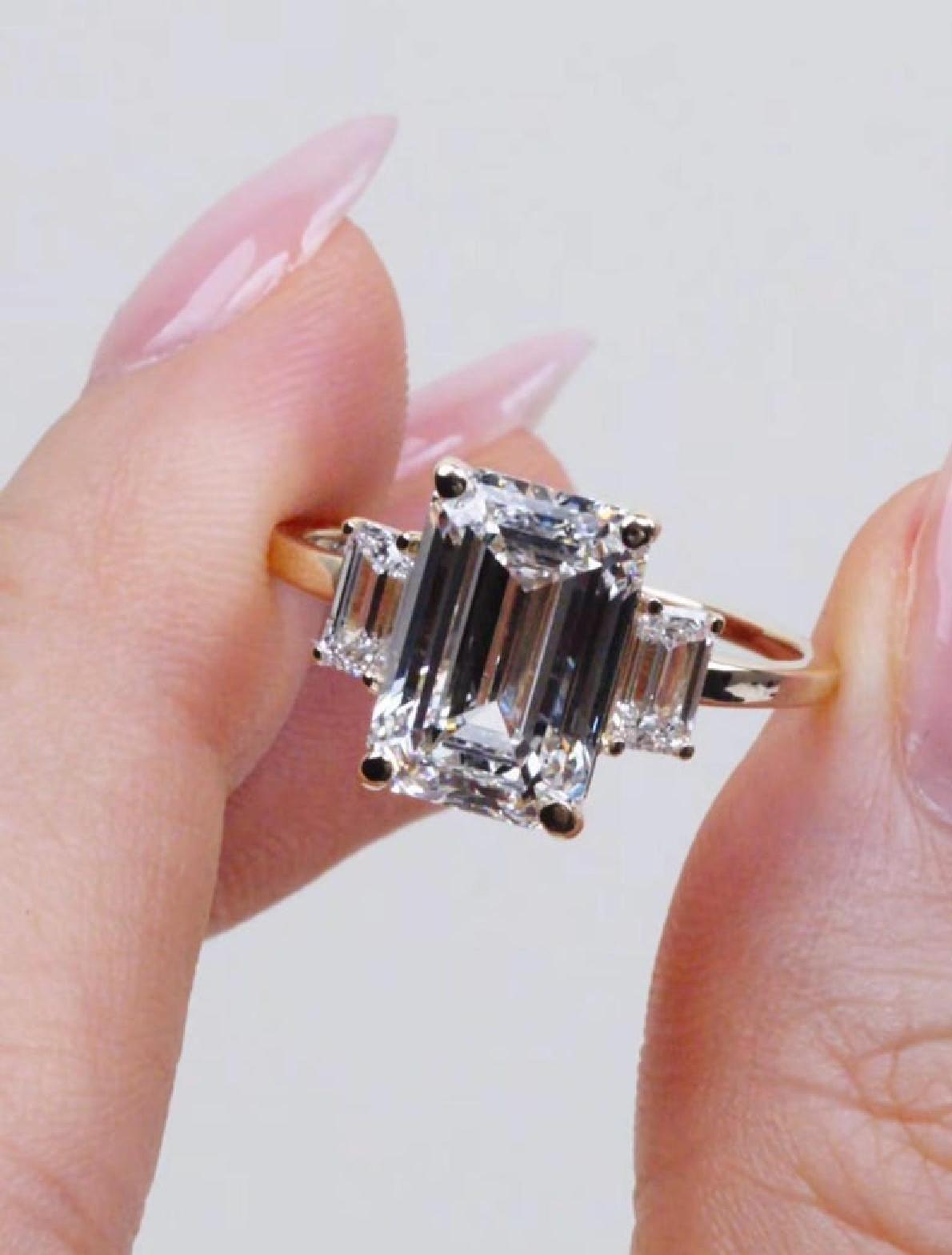 This 4 CT Emerald Cut Moissanite Engagement Ring blends modern elegance with timeless design.