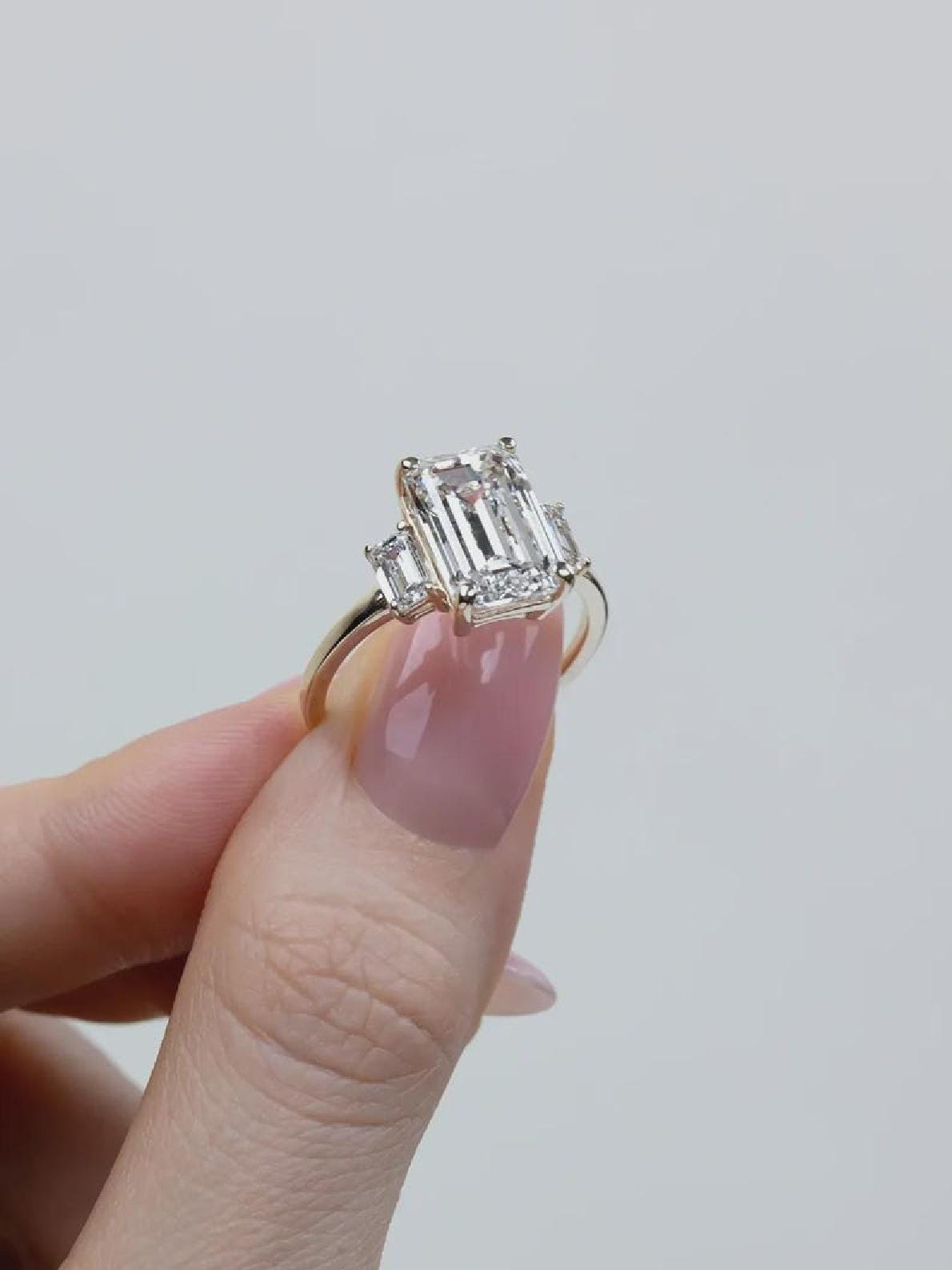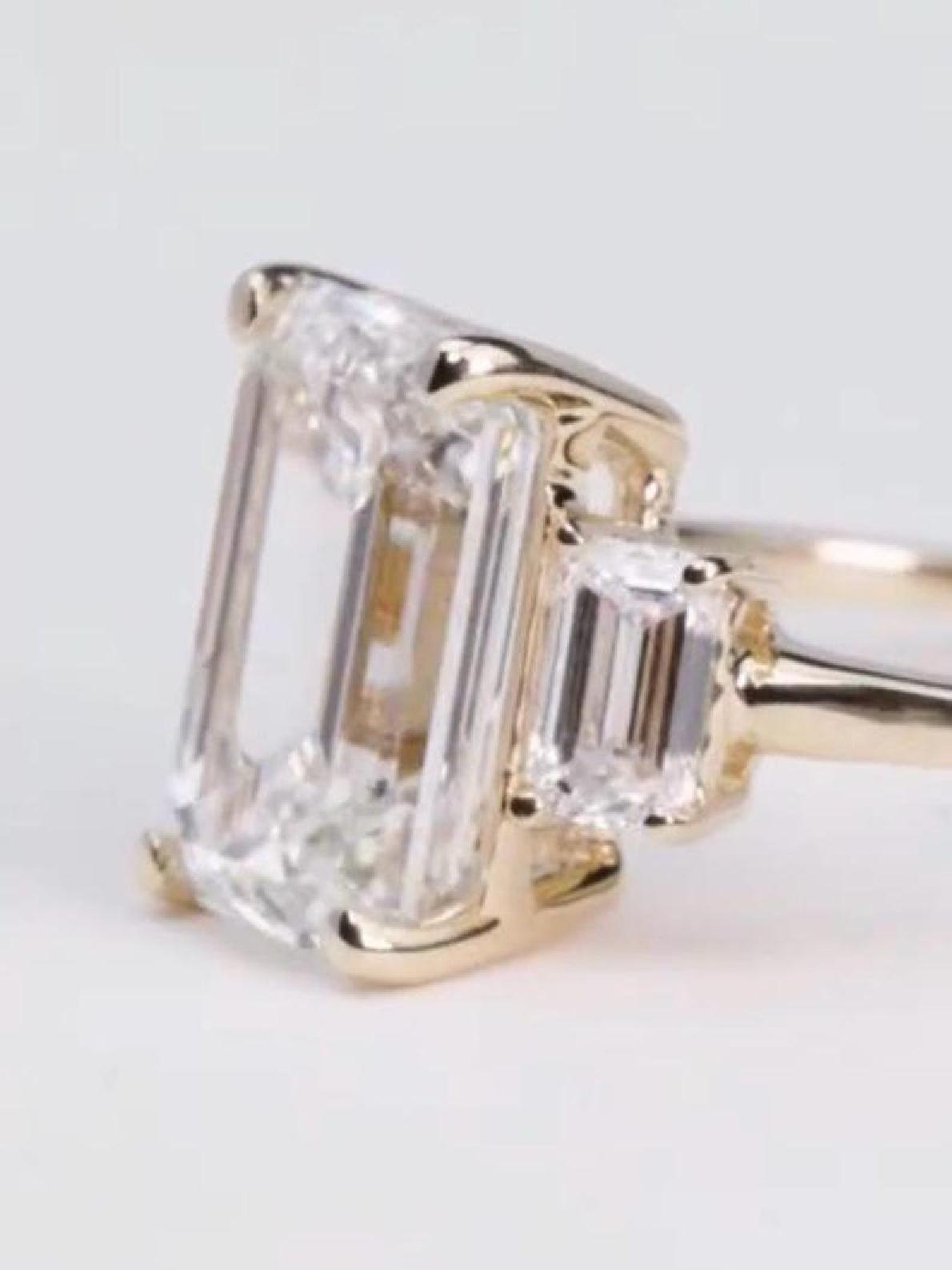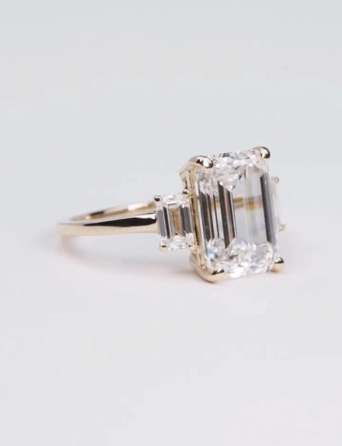 4 CT Emerald Cut Moissanite Diamond Engagement Ring, Side Stone, Modern Classic Design , Custom Made Engagement Or Anniversery Ring