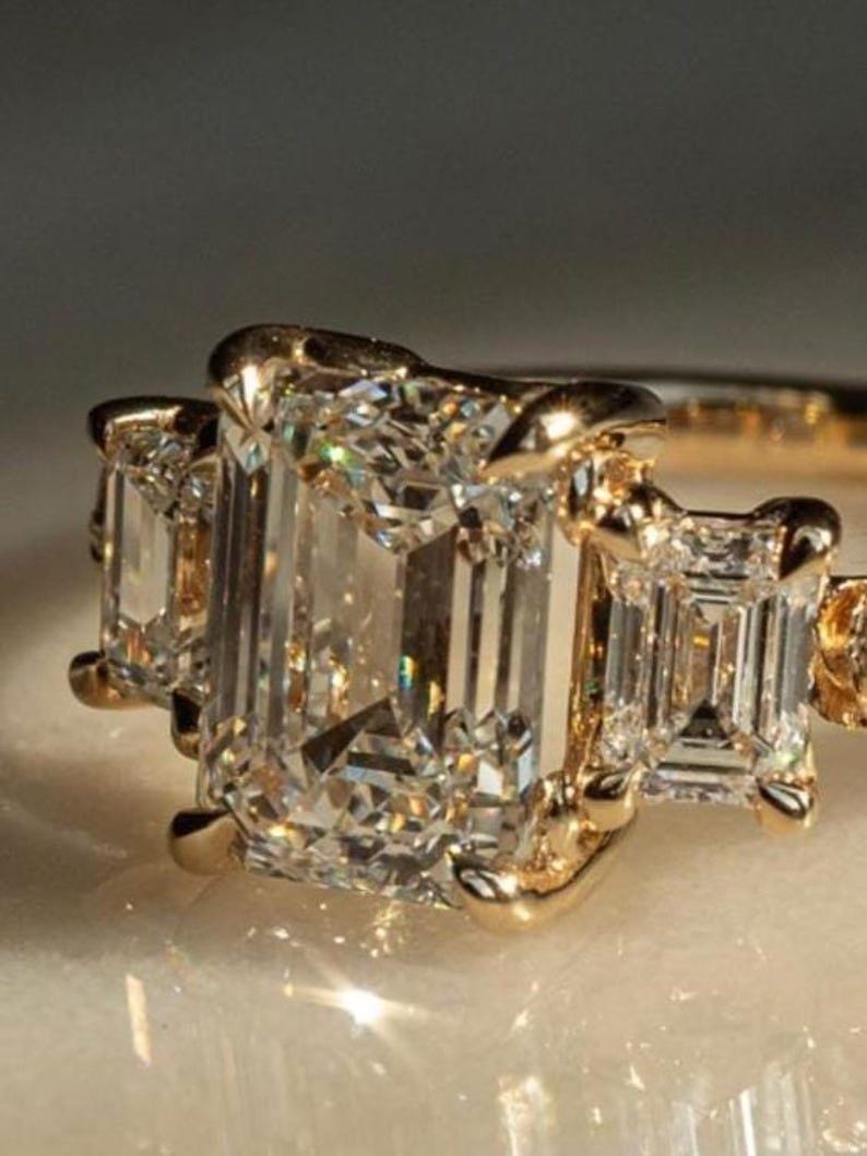 ✨ This 4 CT Emerald Cut Moissanite Engagement Ring is a breathtaking blend of Art Deco elegance and romantic floral design.