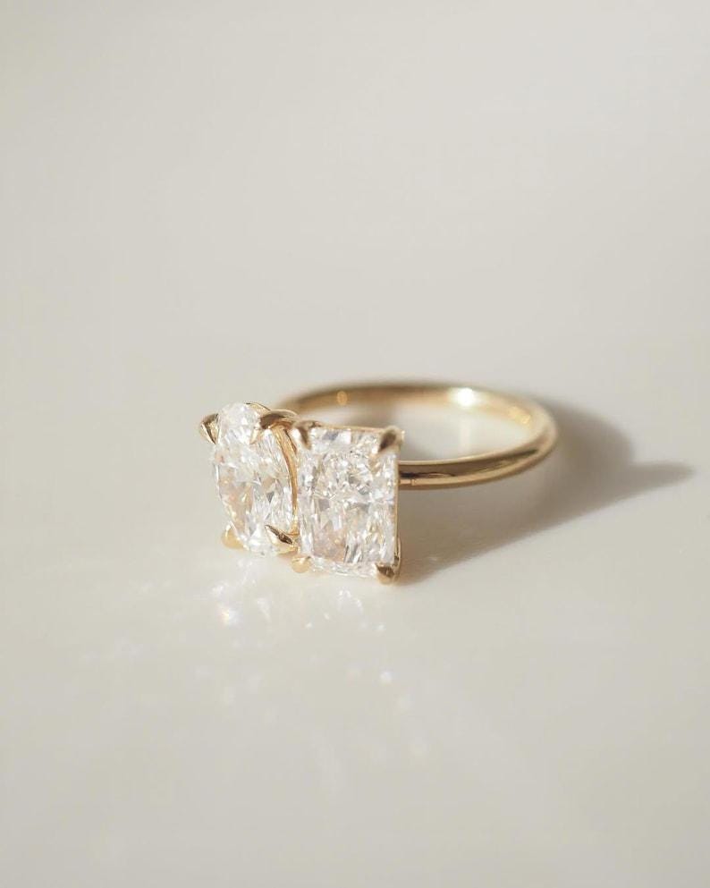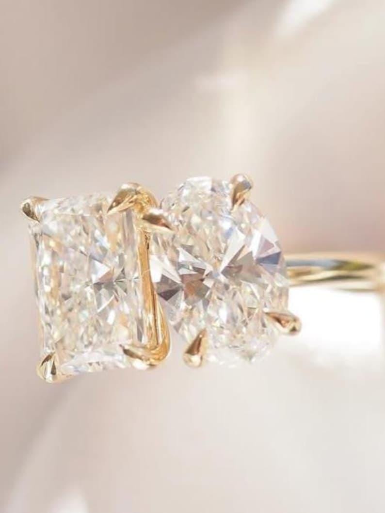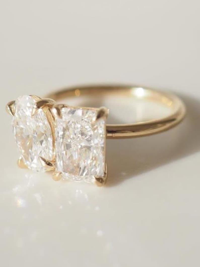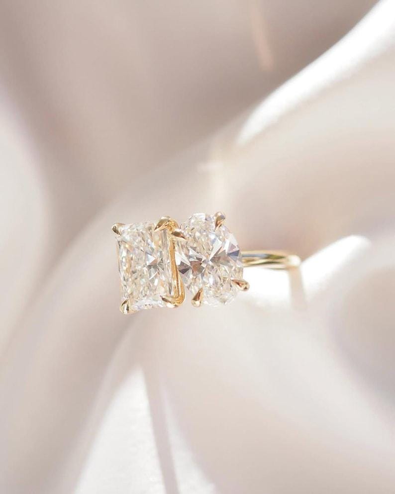4 Carat Total Radiant & Oval Pair Diamond Ring | Toi Et Moi | Moissanite Diamond | Anniversary Ring | Engagement Ring | Wedding ring for her