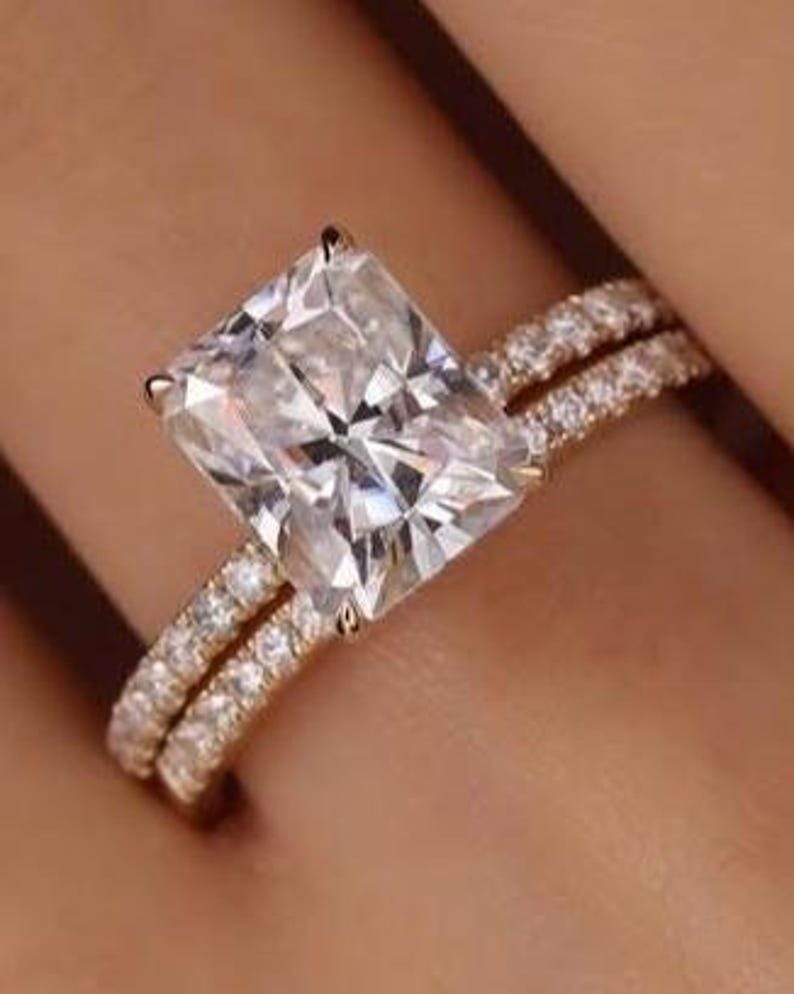 ✨Make a radiant statement with this 3.50 CT Radiant Cut Moissanite Engagement Ring Set.