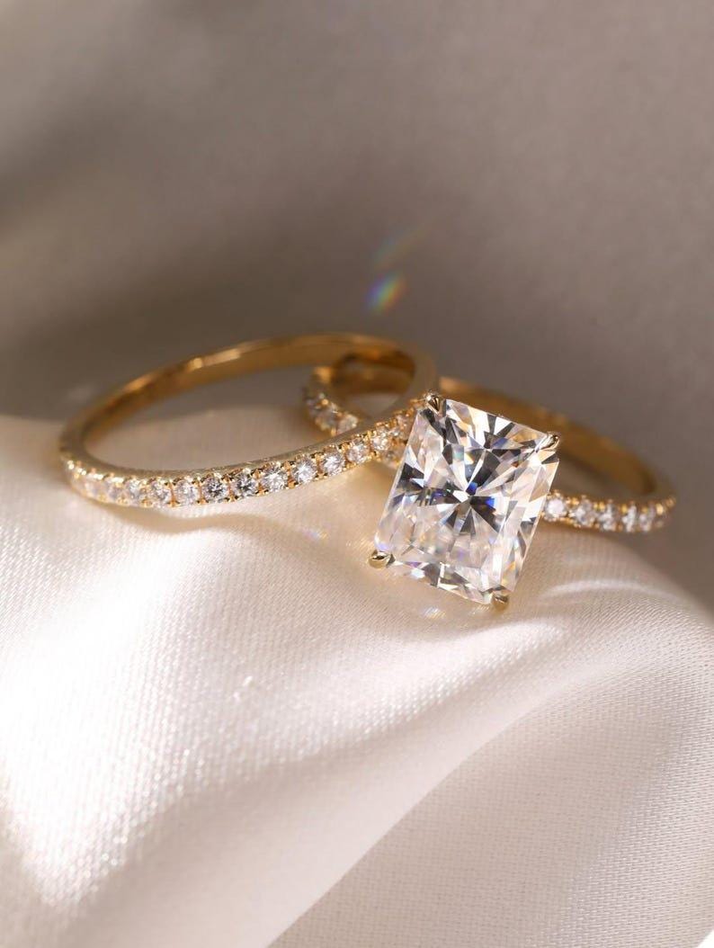 3.50 CT Radiant Cut Moissanite Engagement Ring Set, Yellow Gold Wedding Ring Set, Bridal Set, Diamond Anniversary Gift Matching Ring Set