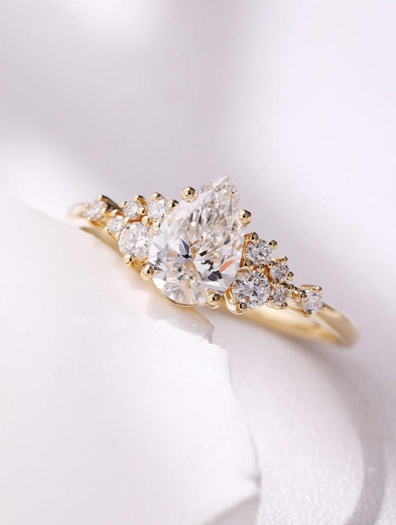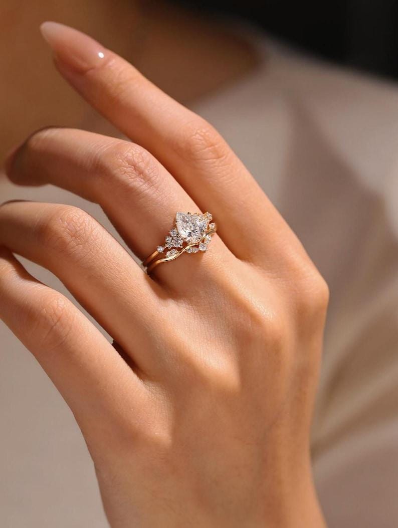 ✨This 3 CT Pear-Cut Moissanite Engagement Ring Set is a beautiful blend of elegance and individuality.