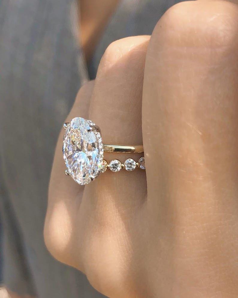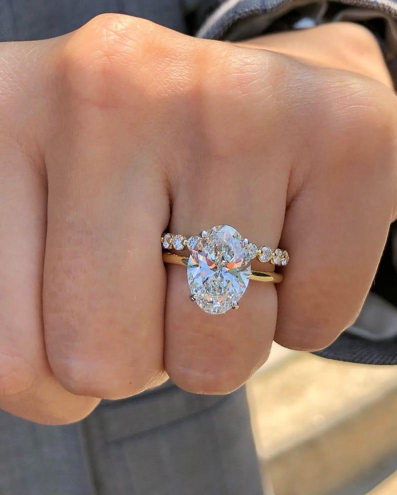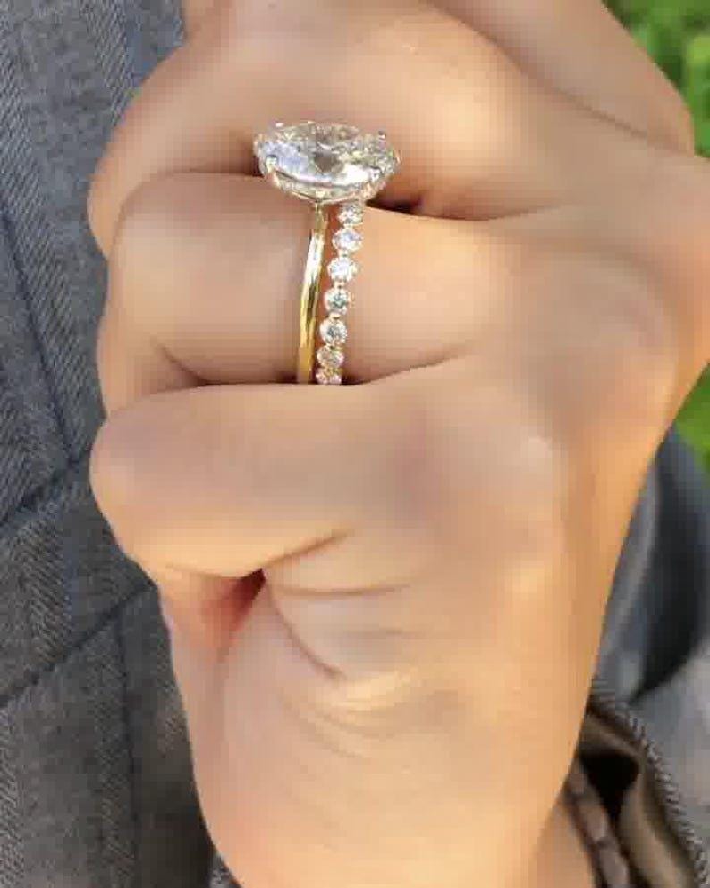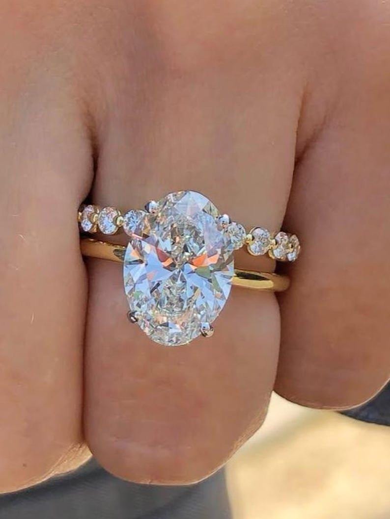 ✨This 4 Carat Oval Moissanite Engagement Ring and Wedding Band Set is a stunning symbol of love and commitment.