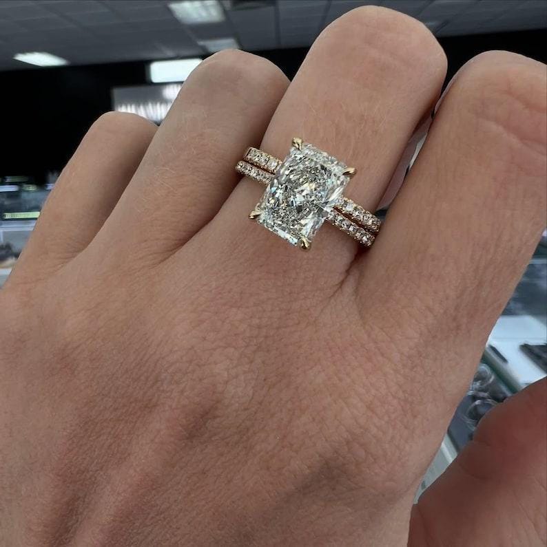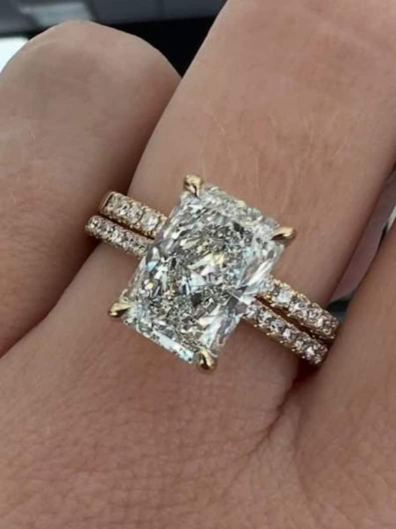 ✨This 4 CT Radiant Cut Moissanite Diamond Engagement Ring Set is designed to captivate.