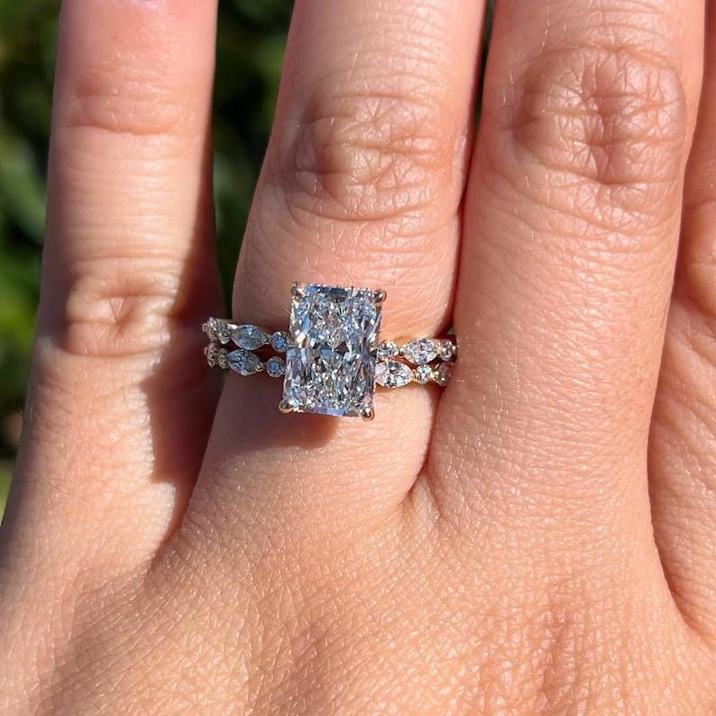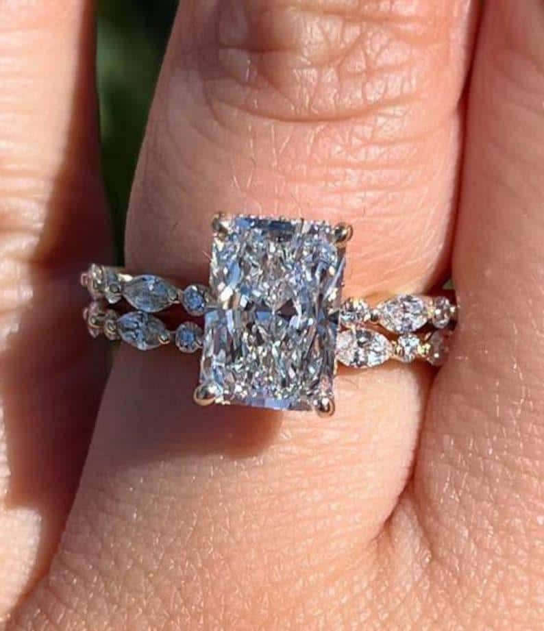 ✨This 3 CT Radiant Cut Moissanite Diamond Engagement Ring Set is the perfect balance of elegance and brilliance.