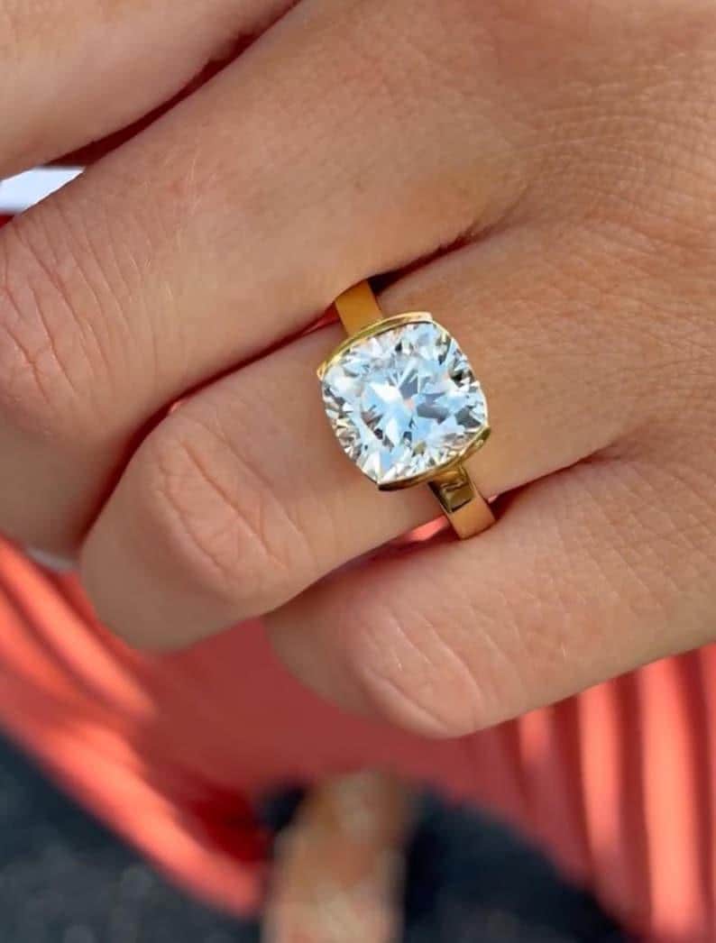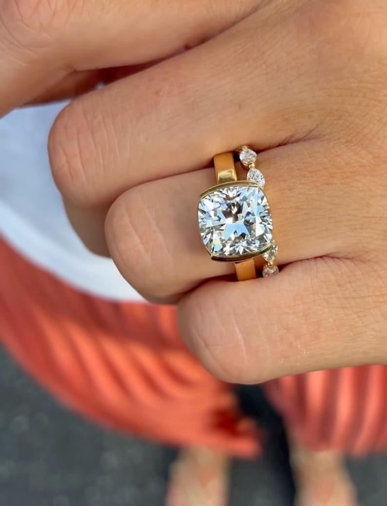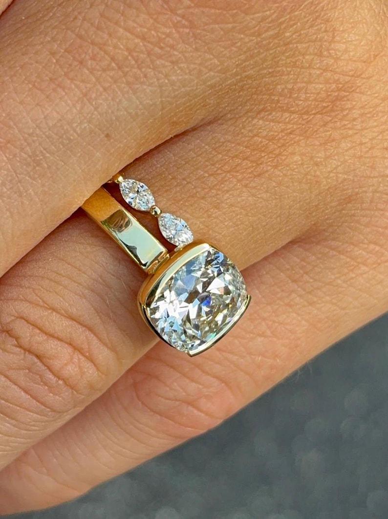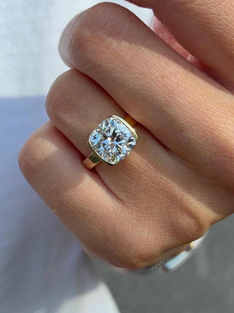The bezel setting provides a smooth, secure finish while enhancing the stone’s clean lines and brilliance. The elongated cushion cut creates graceful finger coverage, making this ring both eye-catching and comfortable for everyday wear.