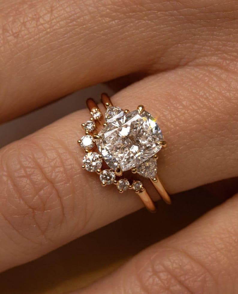 ✨This 2.50 CT Cushion Cut Moissanite Engagement Ring is a beautiful balance of classic charm and modern elegance.