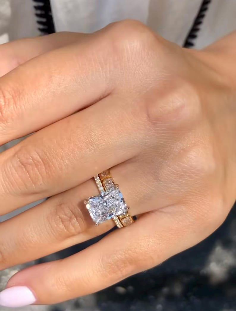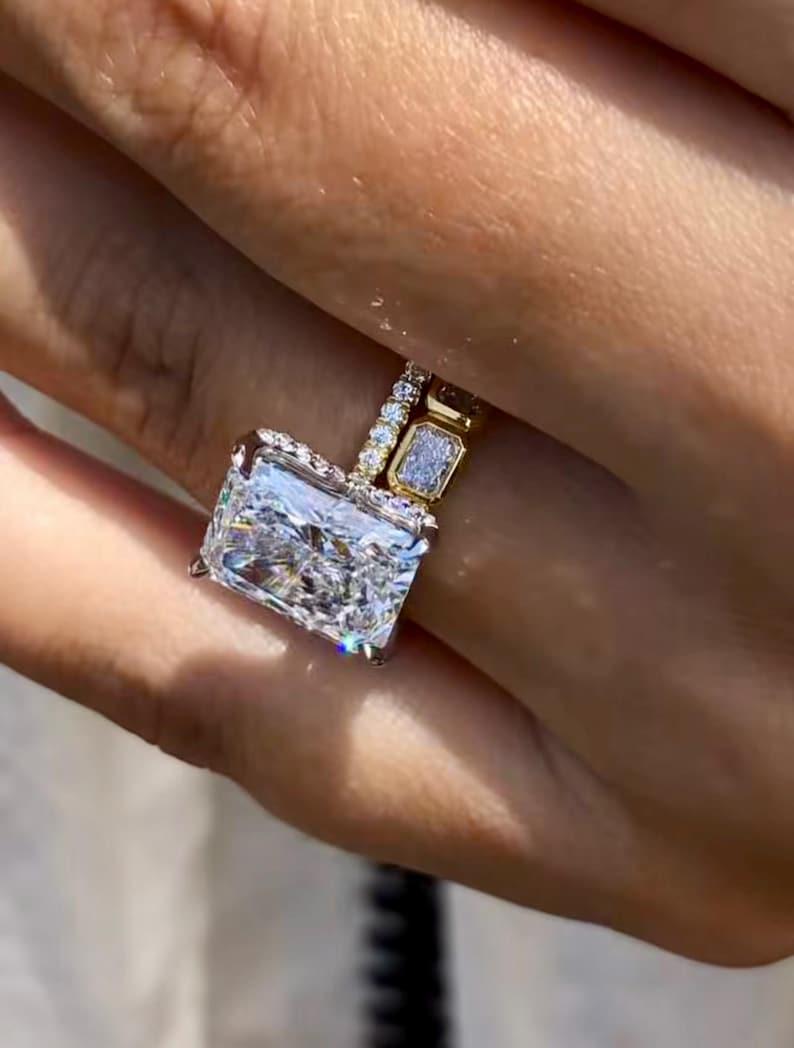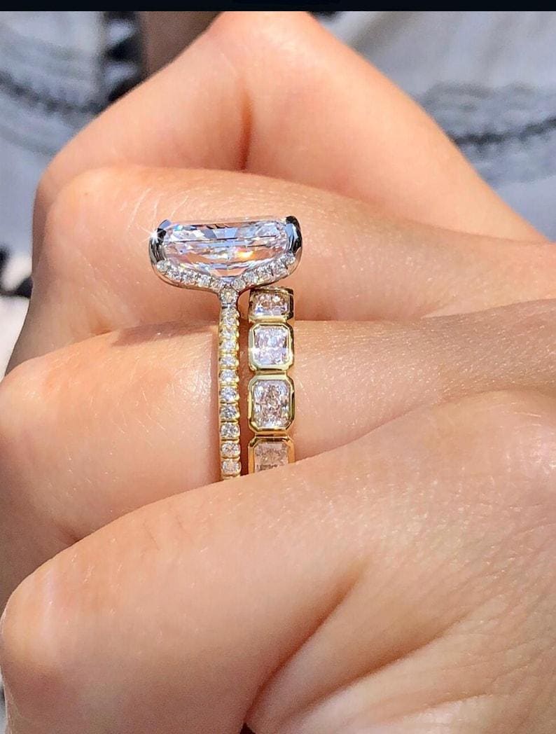✨This 3 CT Radiant Cut Moissanite Engagement Ring Set is designed to shine from every angle.