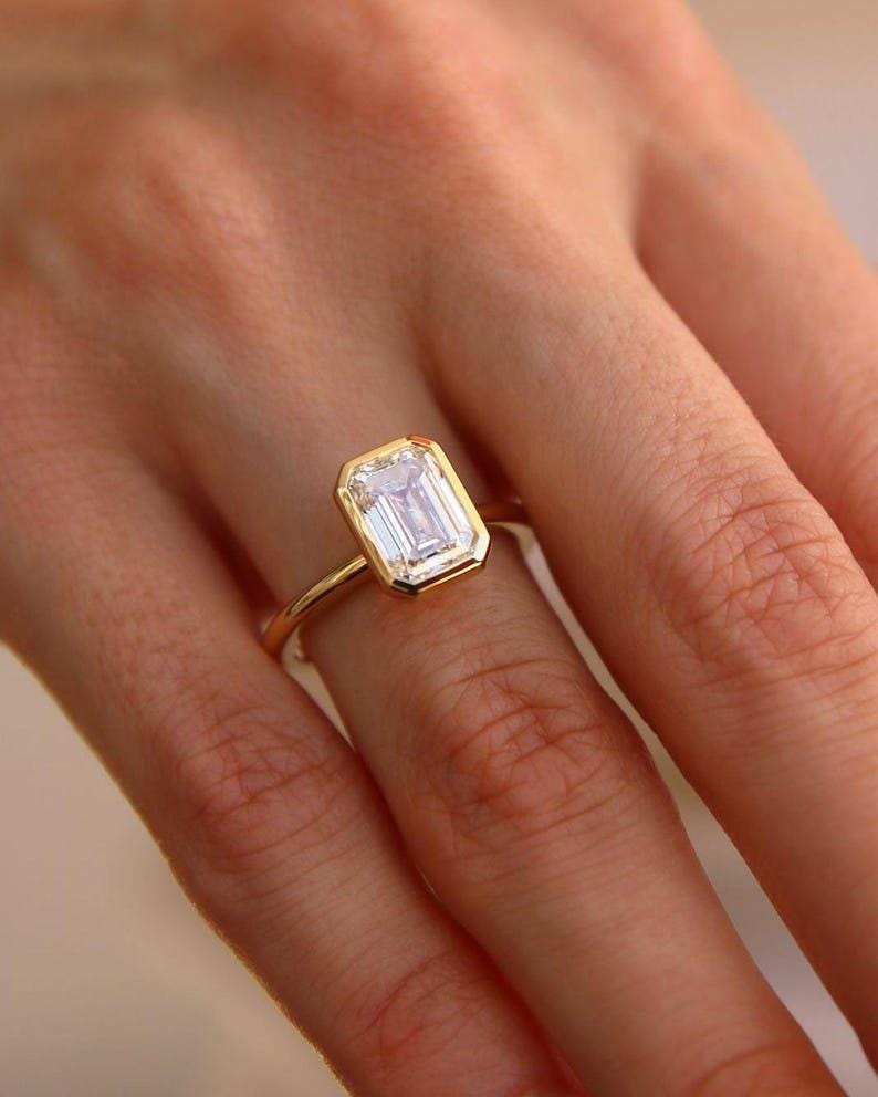 ↣ Elegant 2 CT emerald-cut moissanite with crisp, mirror-like brilliance