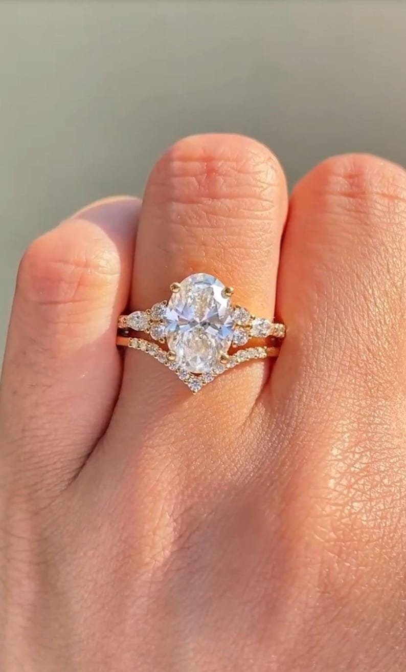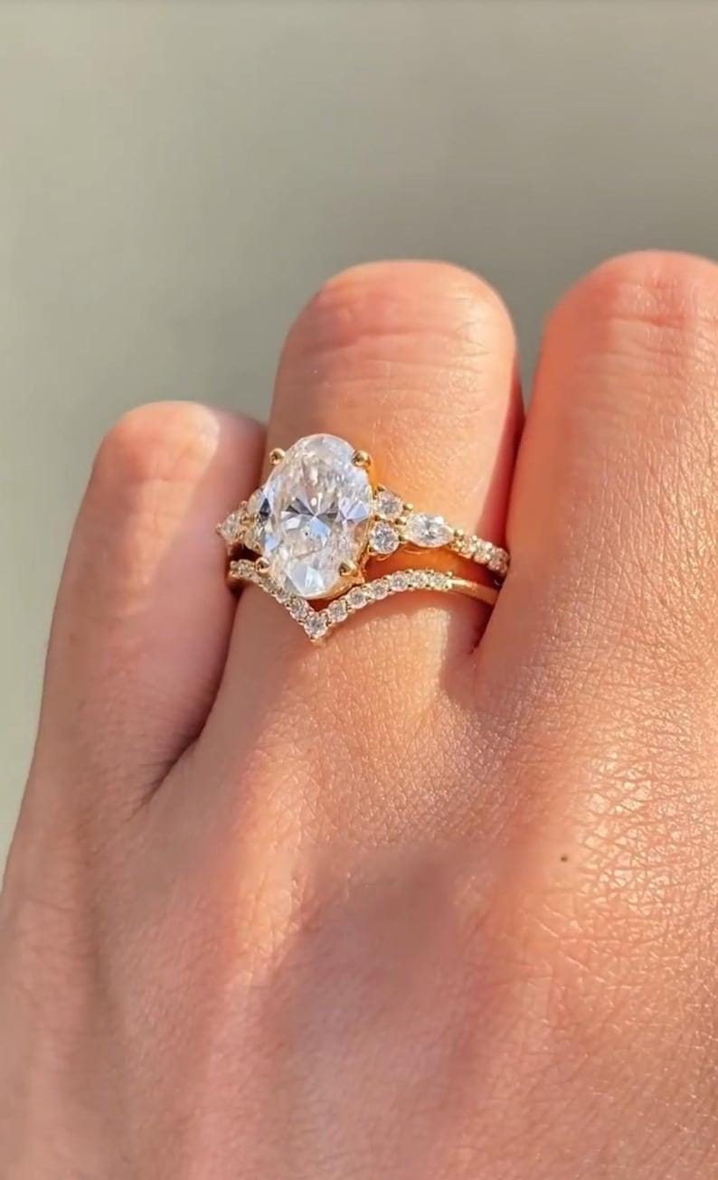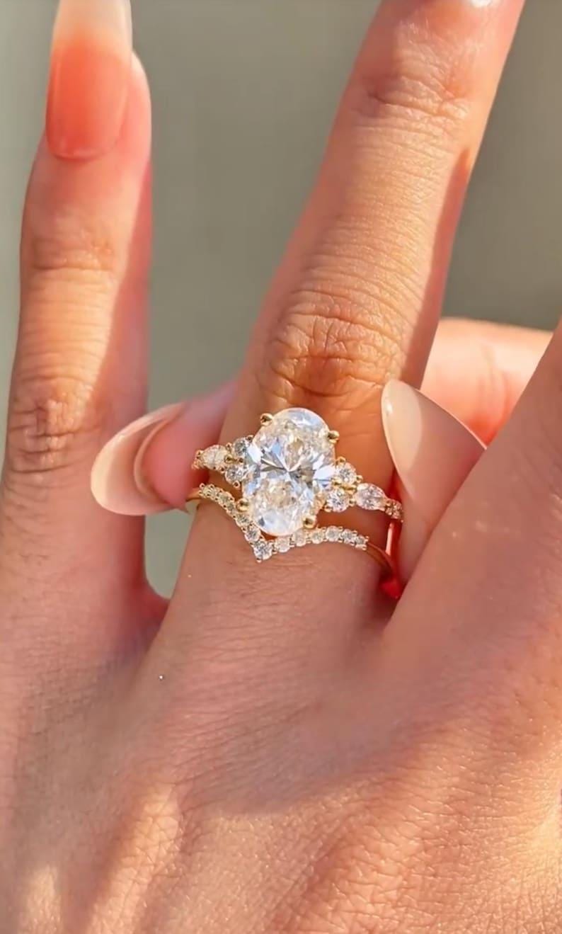 ✨This 3 CT Oval Cut Moissanite Ring Set is a timeless celebration of elegance and commitment.