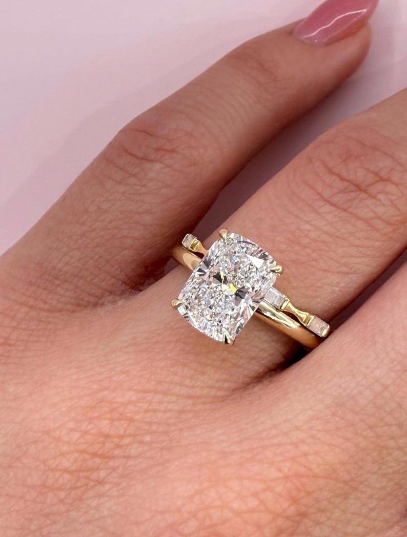 ✨This 2.50 CT Cushion Cut Moissanite Engagement Ring is a perfect balance of classic elegance and modern sophistication.