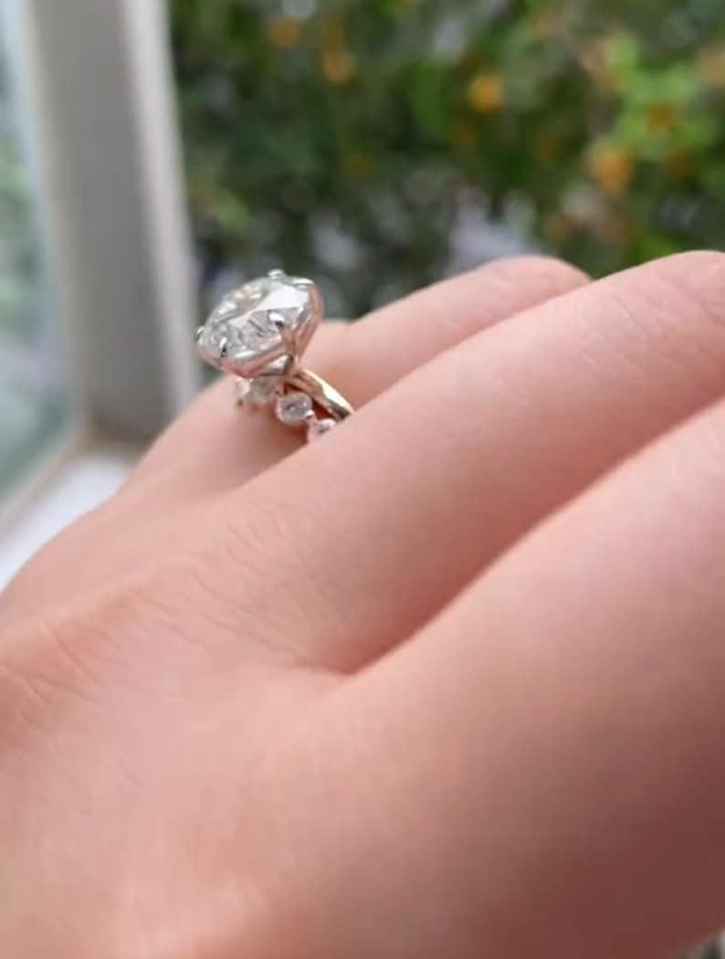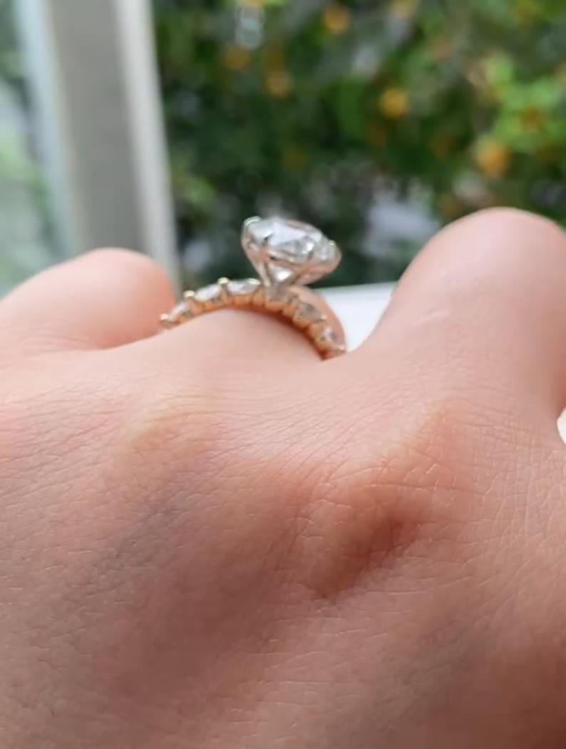✨This Moissanite Bridal Ring Set in rose gold is a timeless blend of vintage charm and modern elegance.