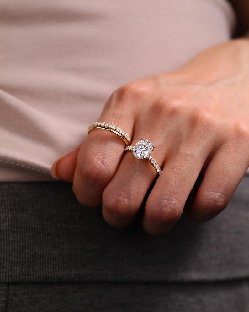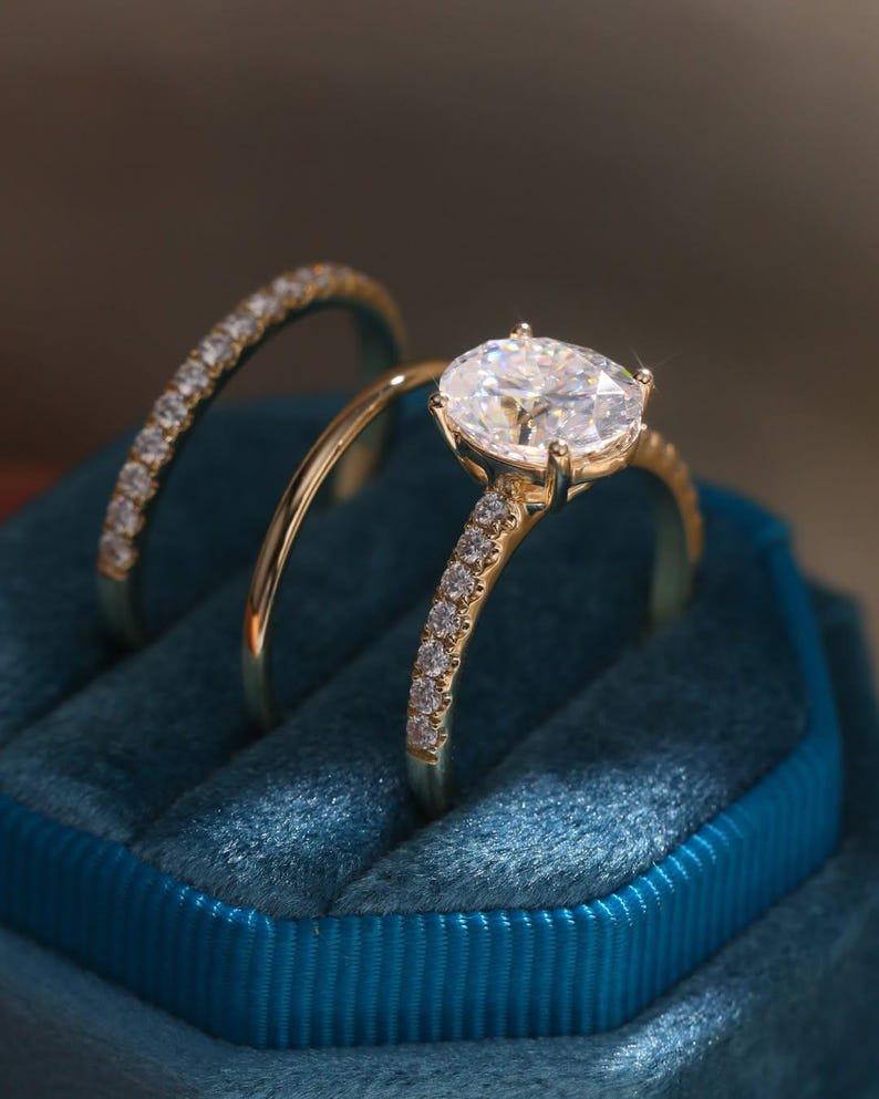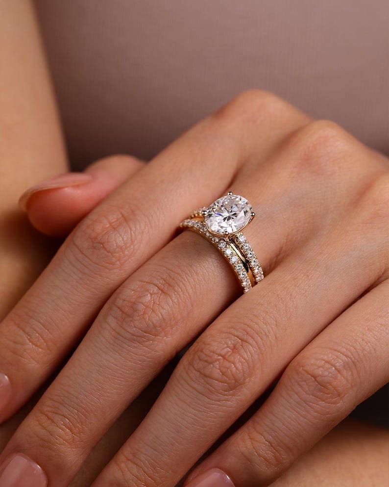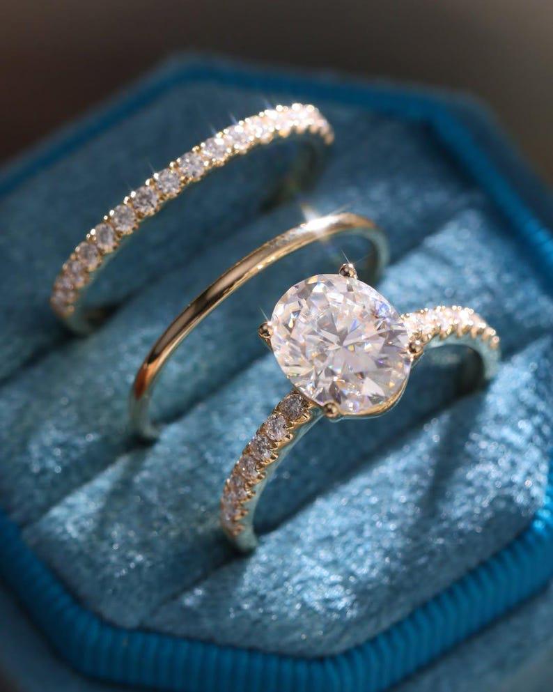 3 CT Oval Cut Moissanite Bridal Ring Set Engagement Ring Set Three Ring Set Anniversary Gift Solid Gold Matching Band Set Wedding Gifts