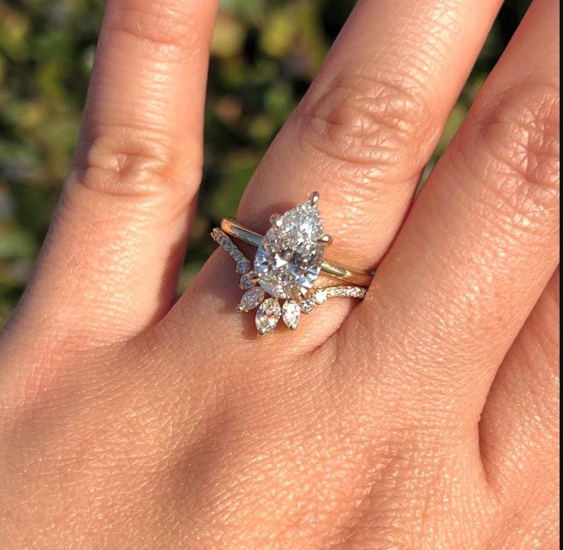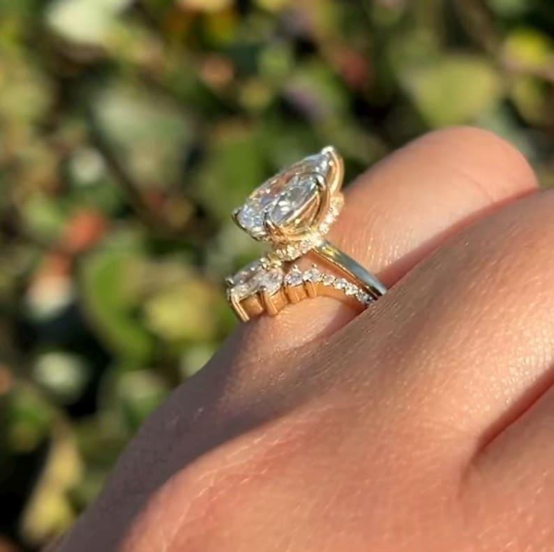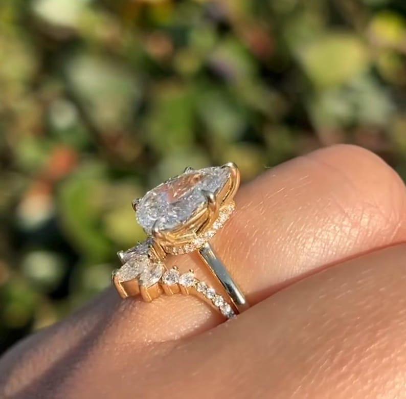2 CT Pear Shaped Moissanite Diamond Wedding Ring Set Rose Gold Engagement Ring Bridal set Diamond Wedding Anniversary Promise Ring Gift