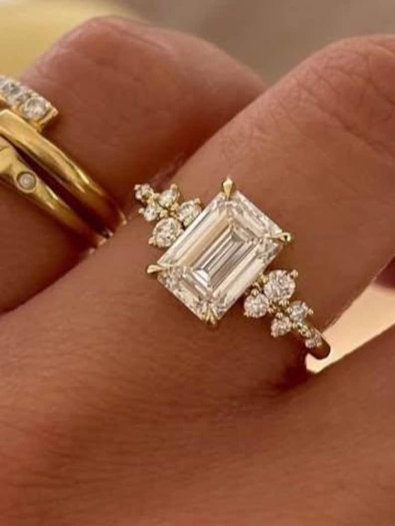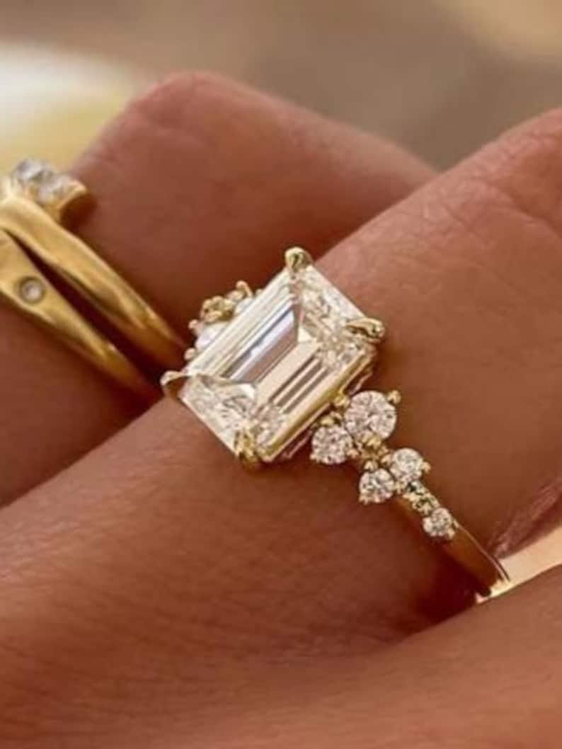 ↣ Flattering elongated emerald cut for a bold, elegant look