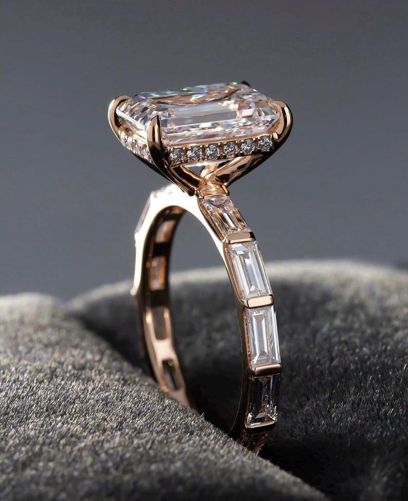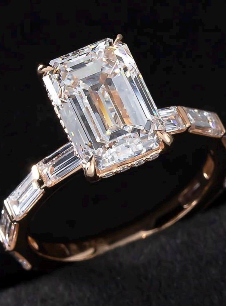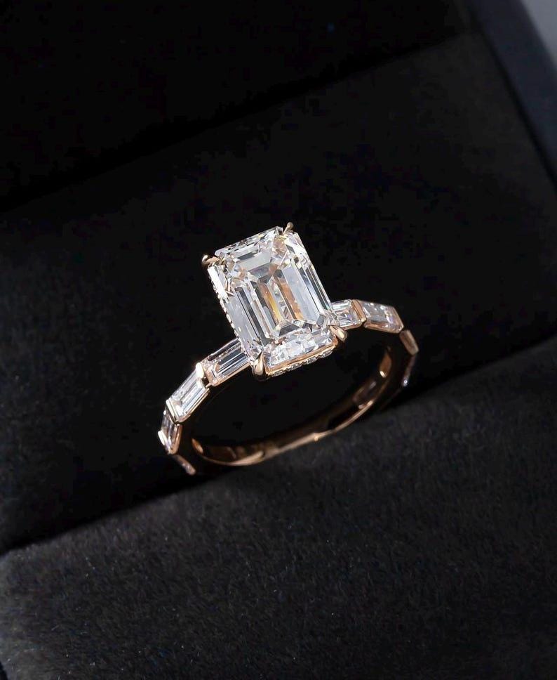 ✨This Rose Gold 3 CT Emerald Cut Moissanite Ring is a breathtaking blend of vintage elegance and modern sophistication.