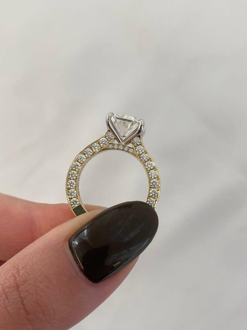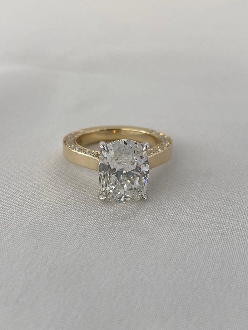 ✨This Elongated 3 CT Cushion Cut Moissanite Ring is a stunning blend of classic elegance and contemporary design.