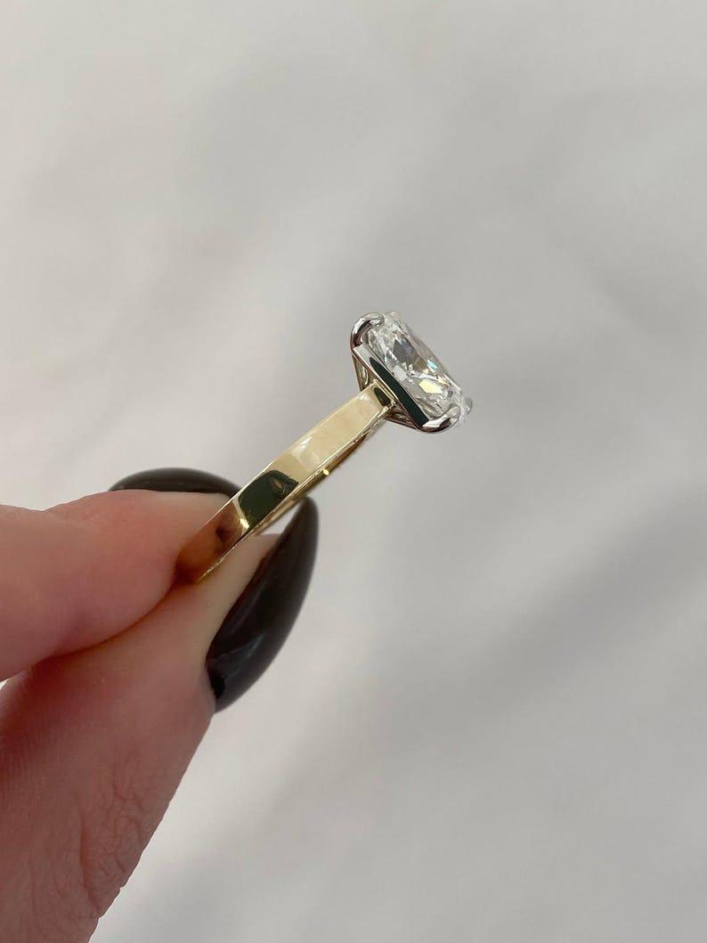 Elongated 3 CT Cushion Cut Moissanite Ring, Bezel Set Cushion Engagement Ring, Gold Moissanite Ring, Solitaire Classic Ring, Rings For Women
