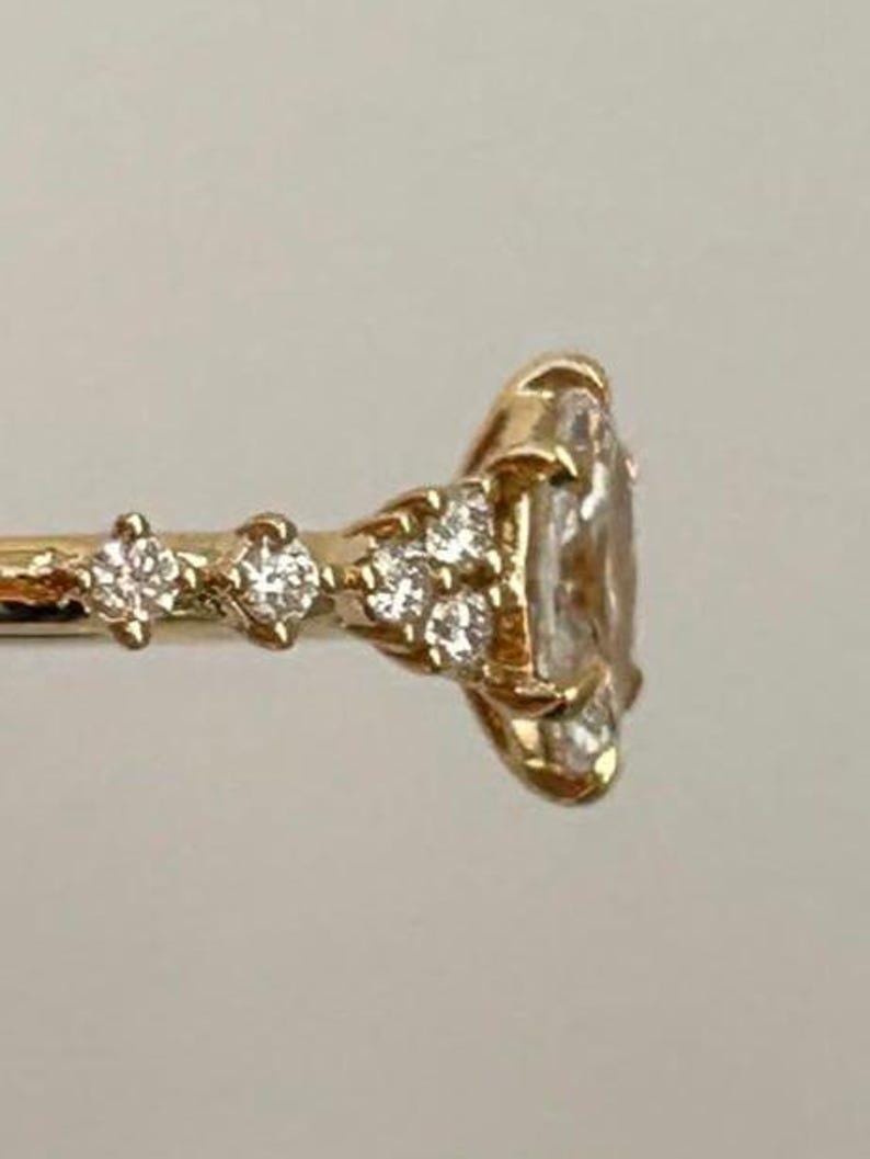 Featuring a brilliant marquise-cut moissanite center stone, this ring offers an elongated silhouette that beautifully enhances the finger while capturing light with exceptional fire. The marquise shape creates a refined, feminine look that feels both classic and unique.