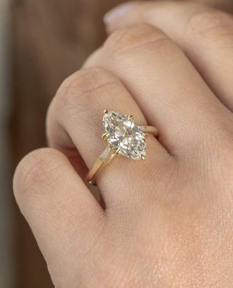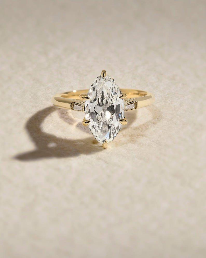 ↣ Brilliant 3 CT marquise-cut moissanite with exceptional fire