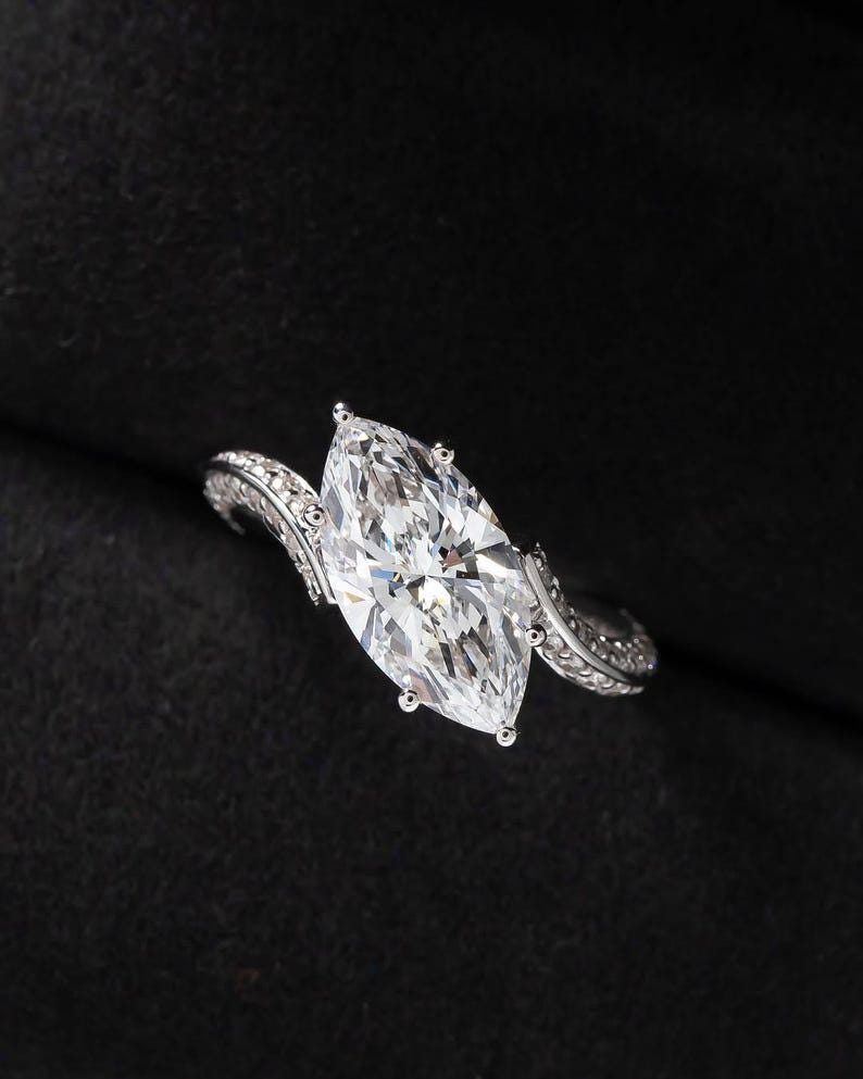 ↣ Brilliant 3 CT marquise-cut moissanite with exceptional fire and sparkle