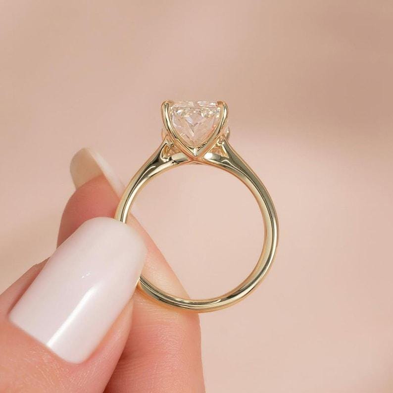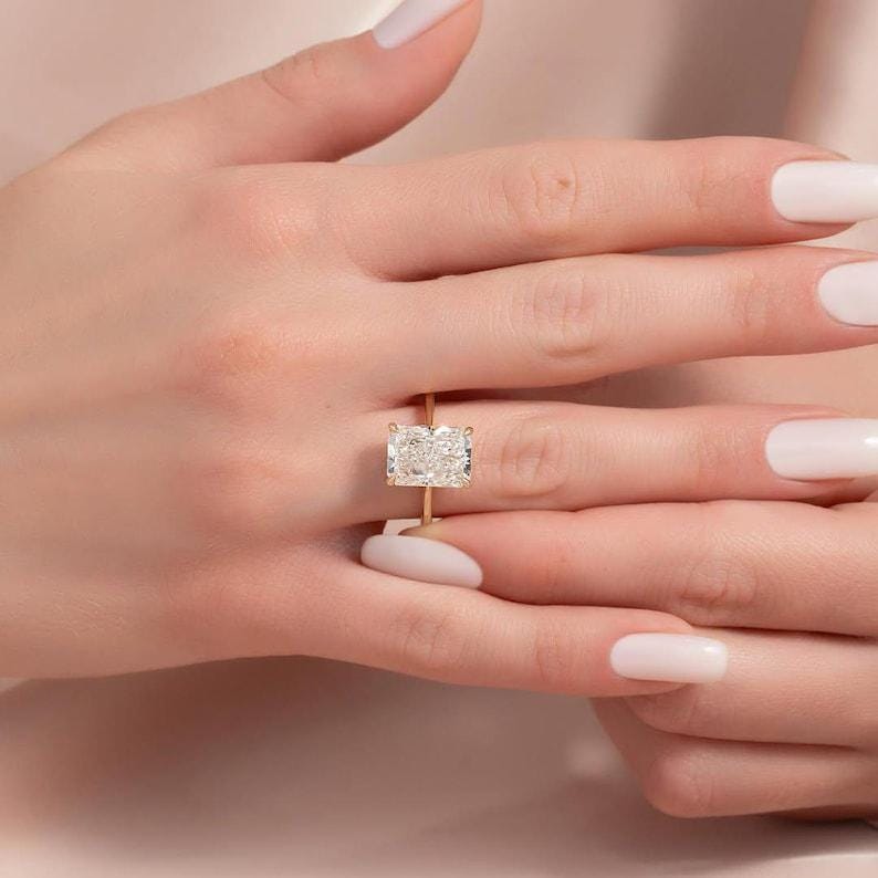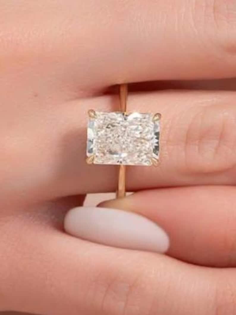 3 CT Radiant Cut Moissanite Engagement Ring, Radiant Four prong set Wedding Ring, 14K Solid Gold Ring, Anniversary Ring | Gift For Her