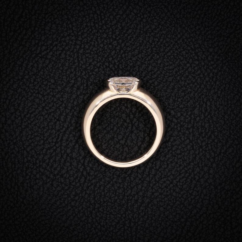 Set in luxurious rose gold, the solitaire design allows the radiant center stone to take full focus while adding a soft, romantic touch. The clean, minimalist setting enhances the stone’s brilliance and offers lasting comfort and durability for everyday wear.