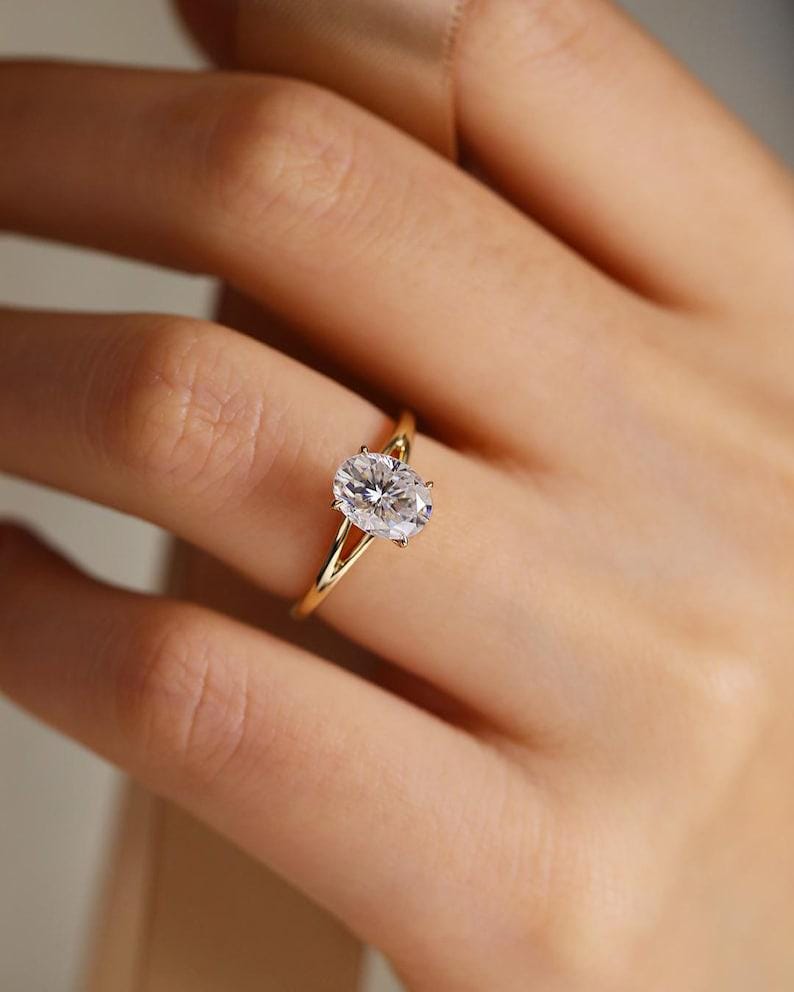 2 CT Oval Cut Moissanite Engagement Ring, Oval Solitaire Moissanite Ring, 14k Solid Gold Ring, Anniversary Gift Ring, Bridal Ring