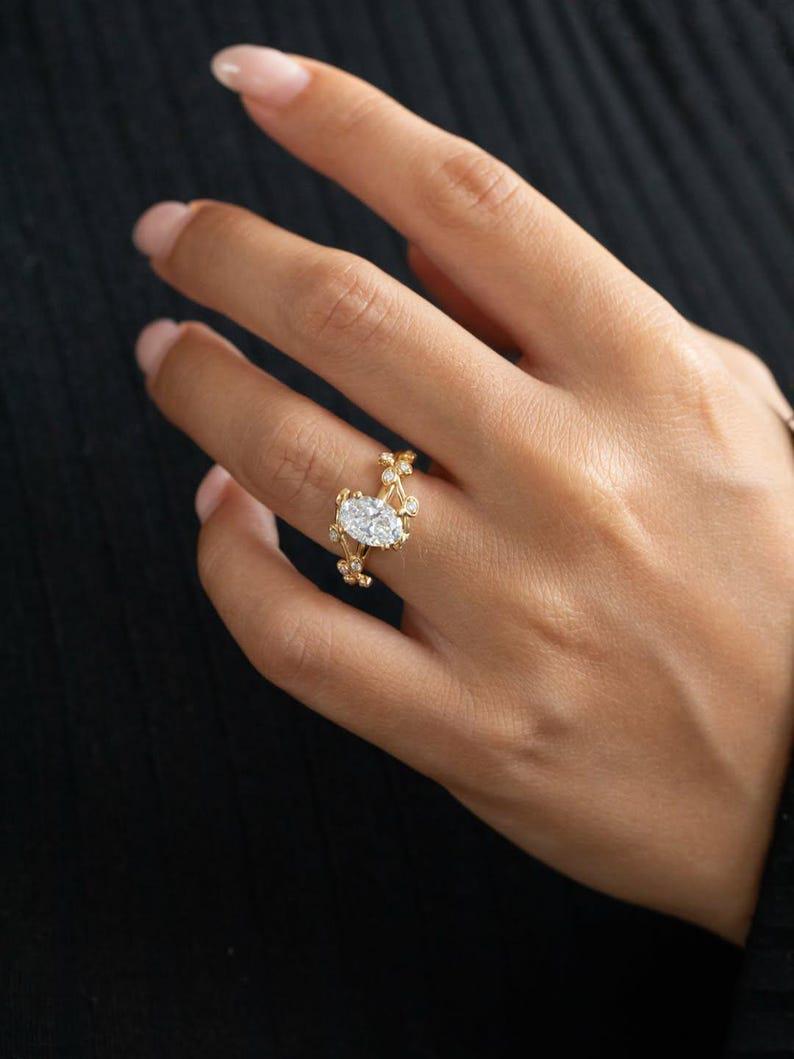 ✨This 1.5 CT Oval Cut Moissanite Engagement Ring is a delicate blend of timeless beauty and vintage charm.