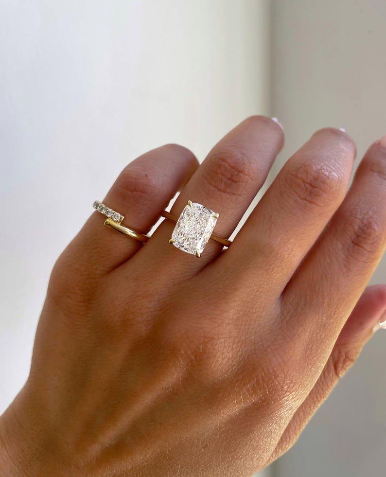 ✨This 3 CT Crushed Ice Cut Cushion Moissanite Engagement Ring is a breathtaking expression of brilliance and contemporary elegance.