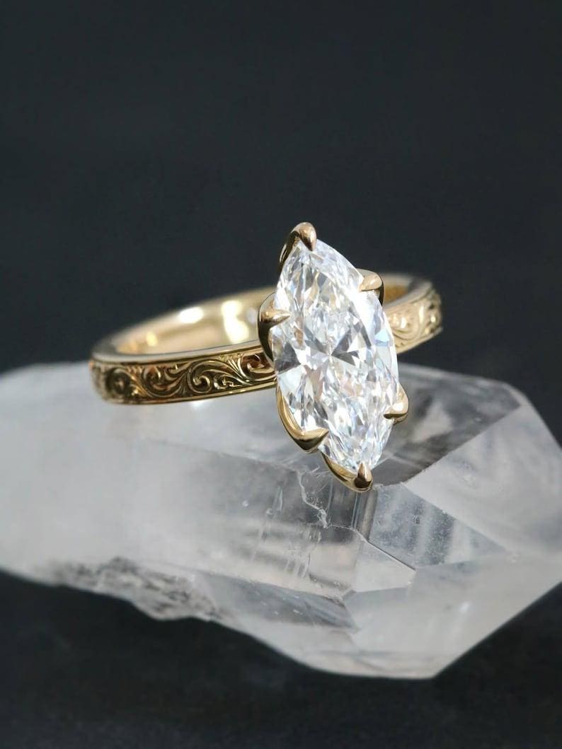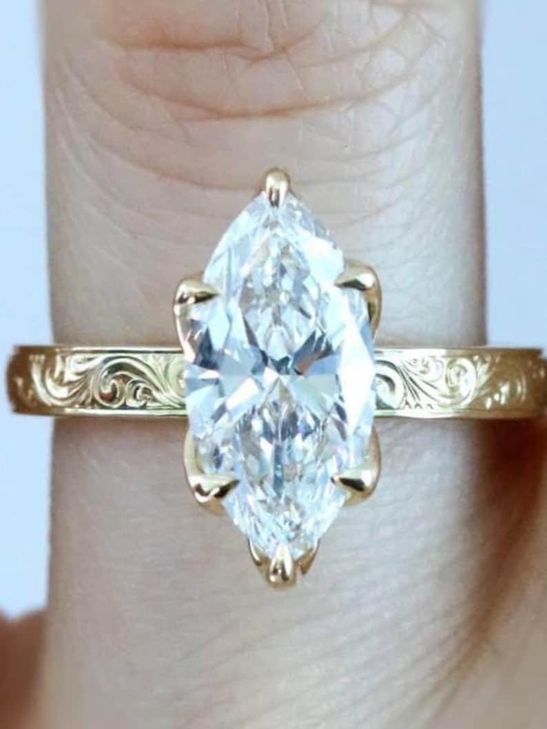 3 CT Marquise Cut Moissanite Engagement Ring, Marquise Wedding Ring, Promise Ring, Six Prong Set Classy Anniversary Rings | Gift