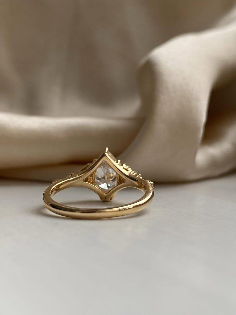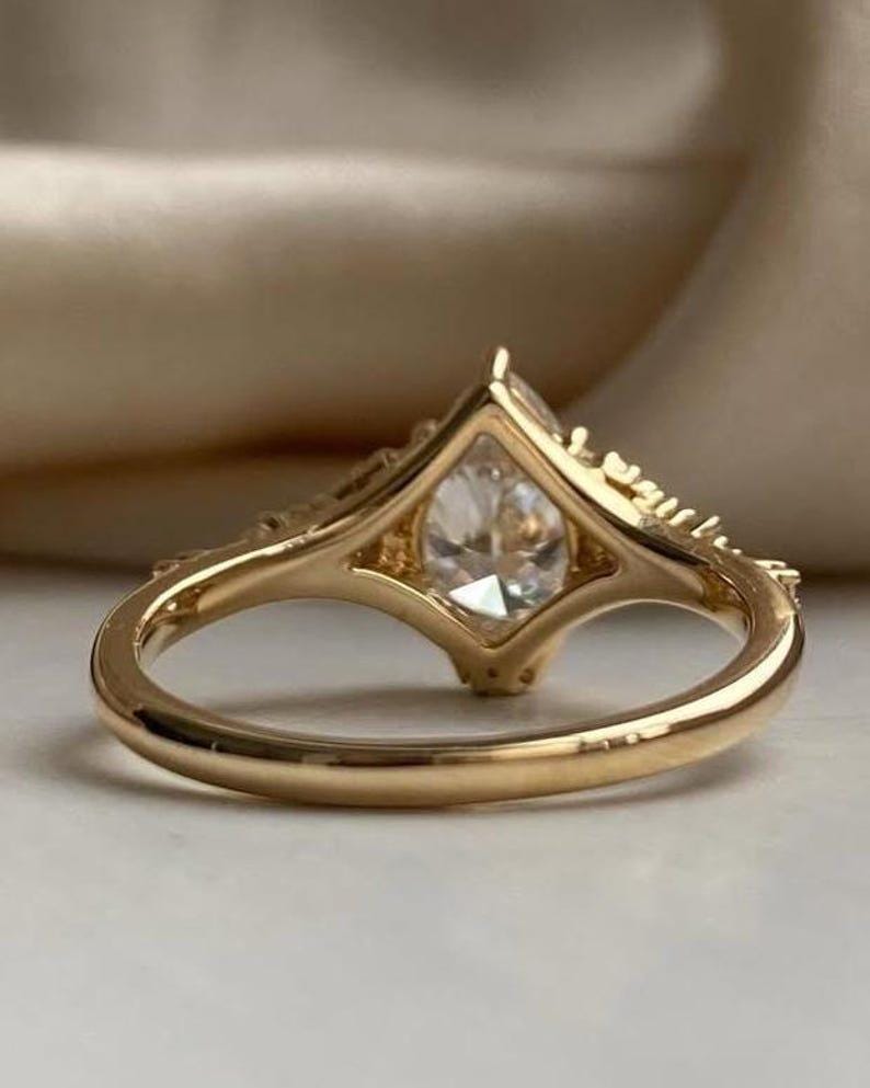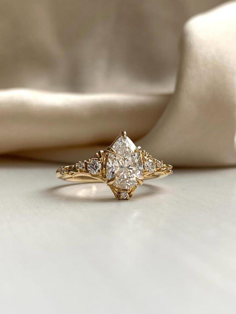 Crafted in 14K solid gold, the band provides luxurious shine, lasting durability, and comfortable everyday wear. Ethical and thoughtfully handcrafted, this pear moissanite ring is perfect for engagements, weddings, anniversaries, or as a meaningful bridal gift.
