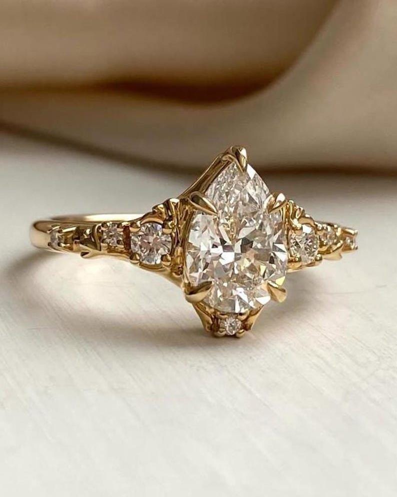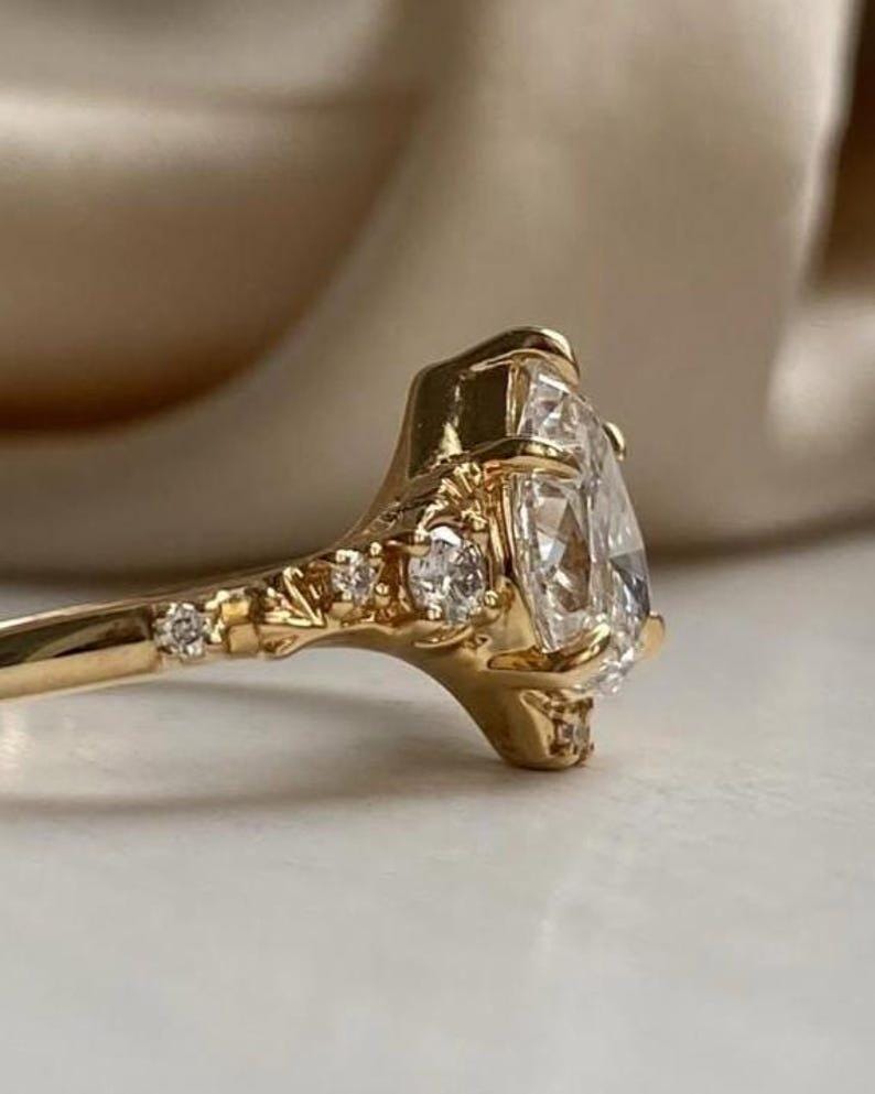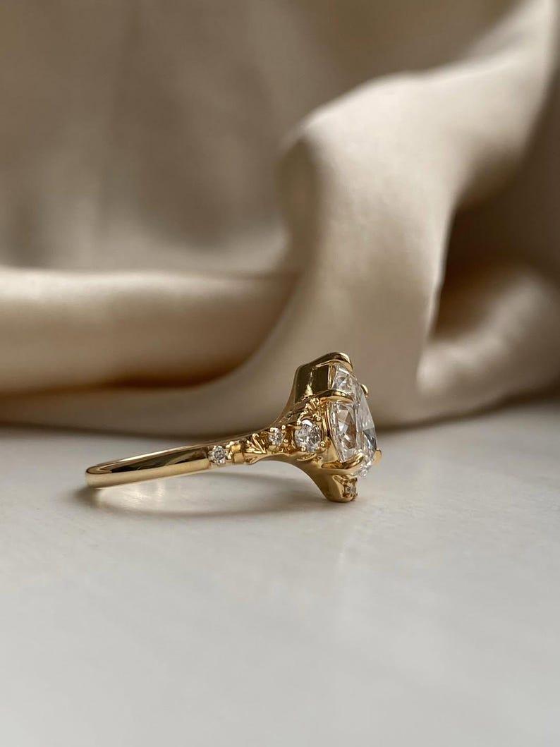 3 CT Pear Cut Moissanite Engagement Ring | Solitaire Ring | 14K Solid Gold | Vintage Inspired Pear Moissanite Ring | Unique Bridal Ring