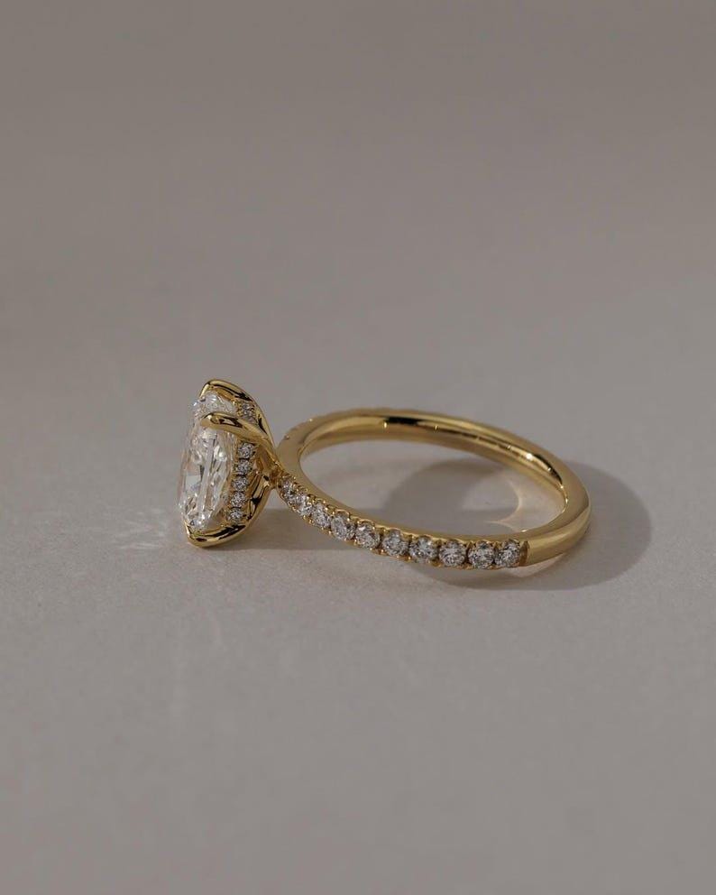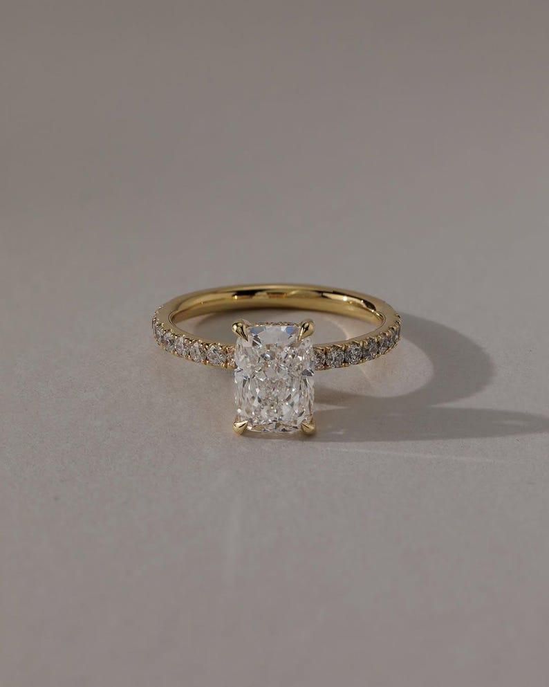 2 CT Elongated Cushion Cut Moissanite Diamond Engagement Ring Cushion Hidden Halo Diamond Ring Wedding Ring Anniversary Gift