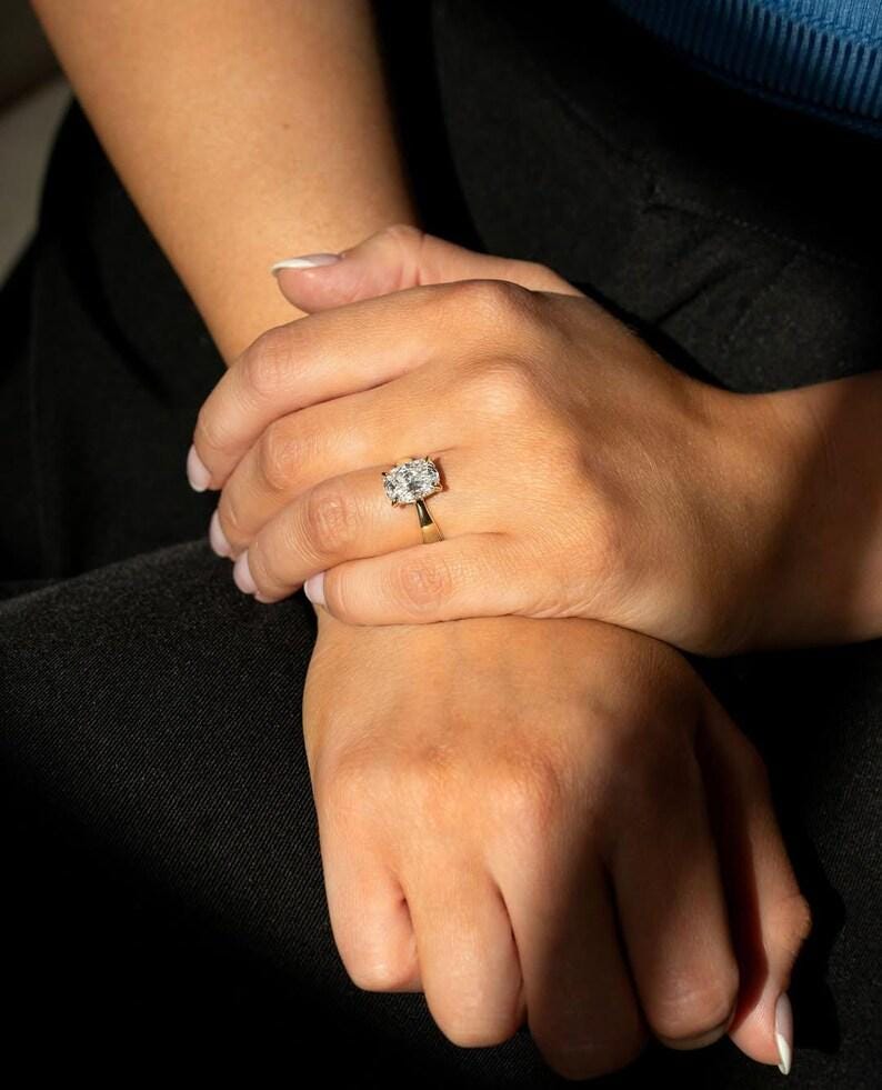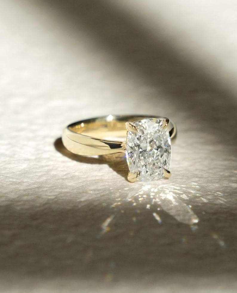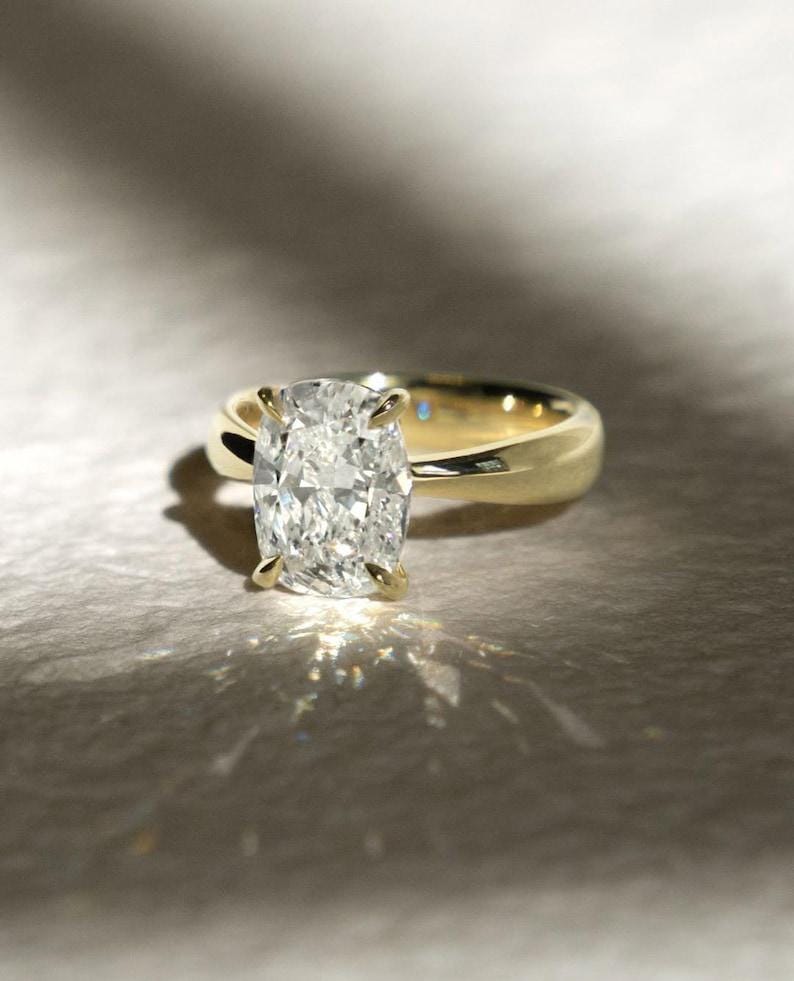 Elongated Cushion Moissanite Ring |3 Carat Cushion Cut Solitaire Engagement Ring | Elongated Cushion Diamond Ring |Vintage Anniversary Ring