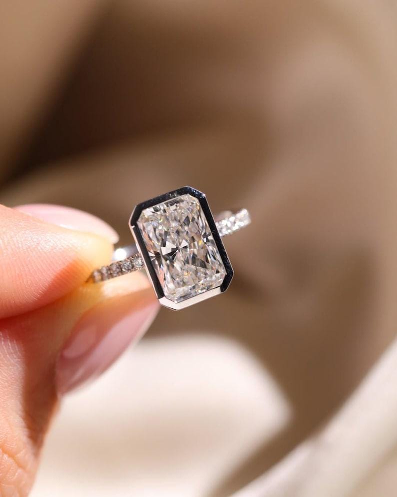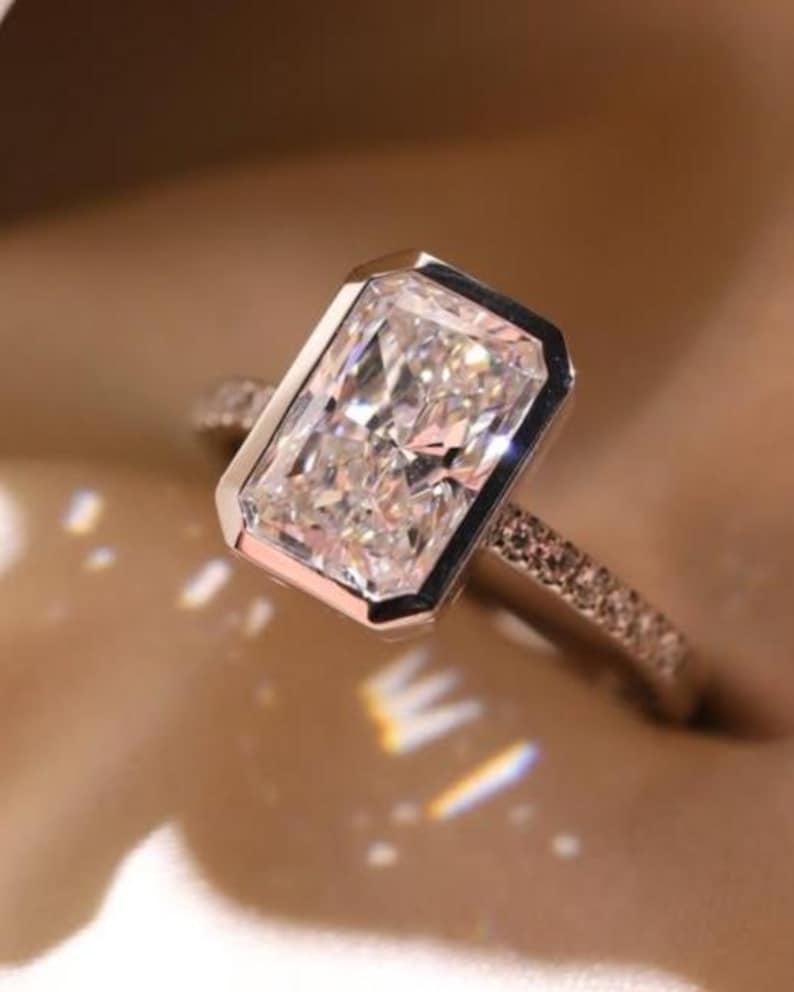 ✨This 3 CT Radiant Cut Moissanite Bezel Set Engagement Ring is a perfect blend of modern elegance and everyday practicality.