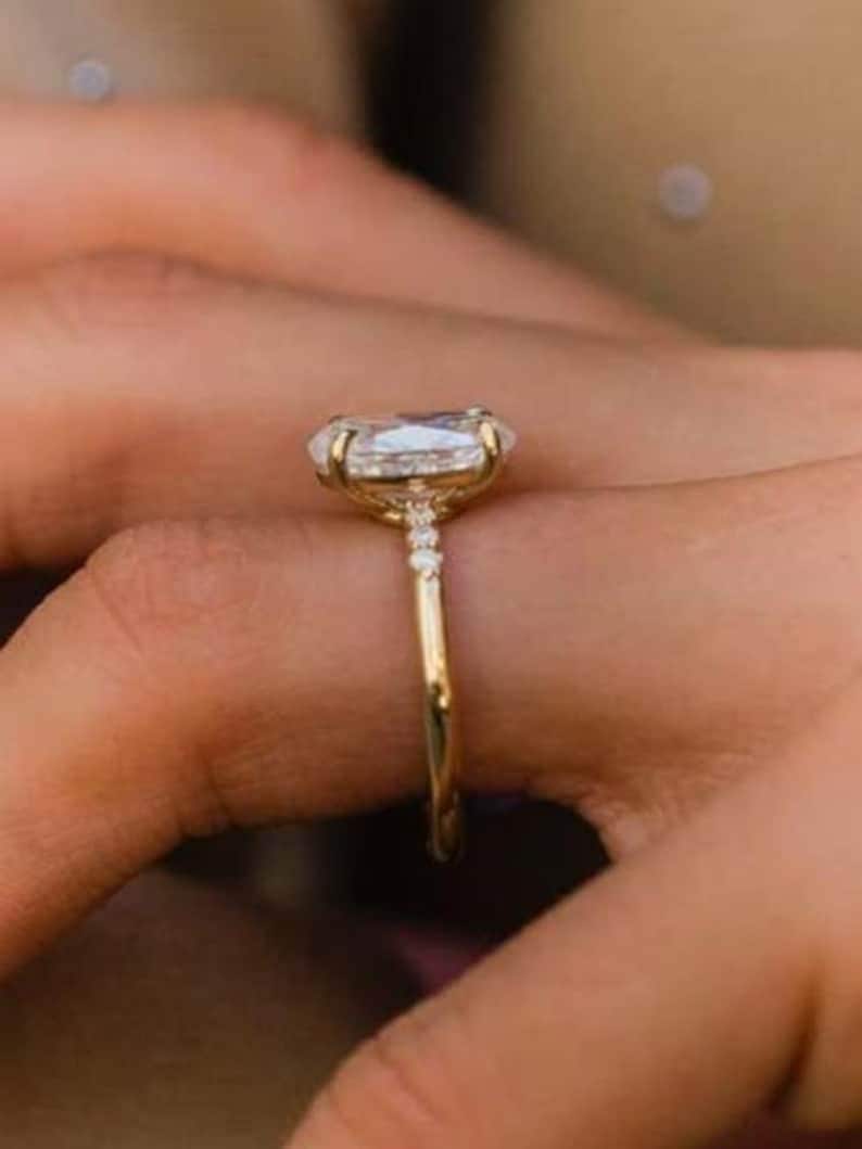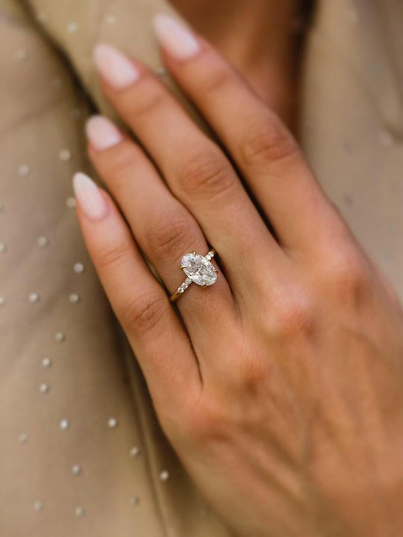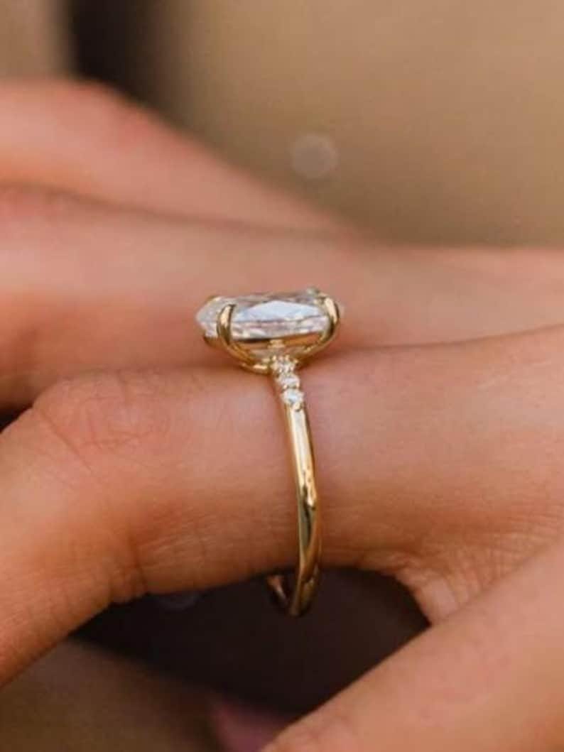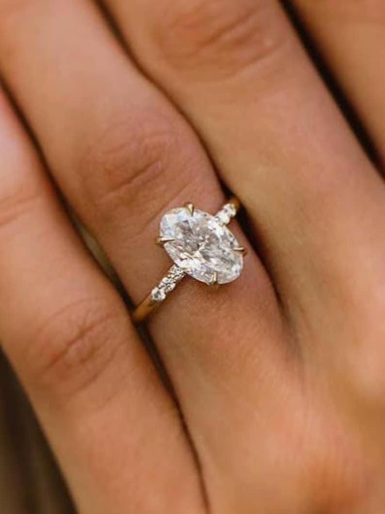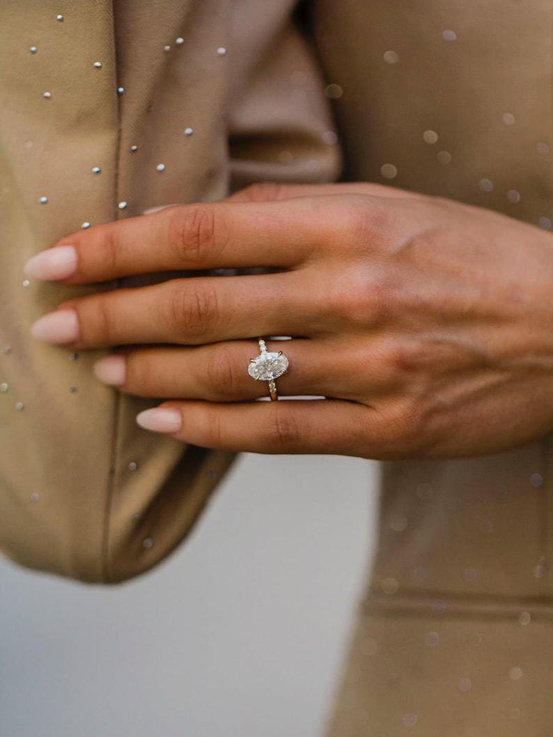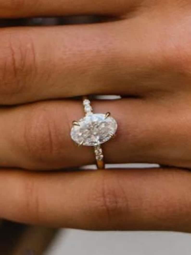 4 CT Oval Moissanite Engagement Ring solid gold Solitaire engagement ring Diamond Wedding, Delicate Women Promise Anniversary Ring