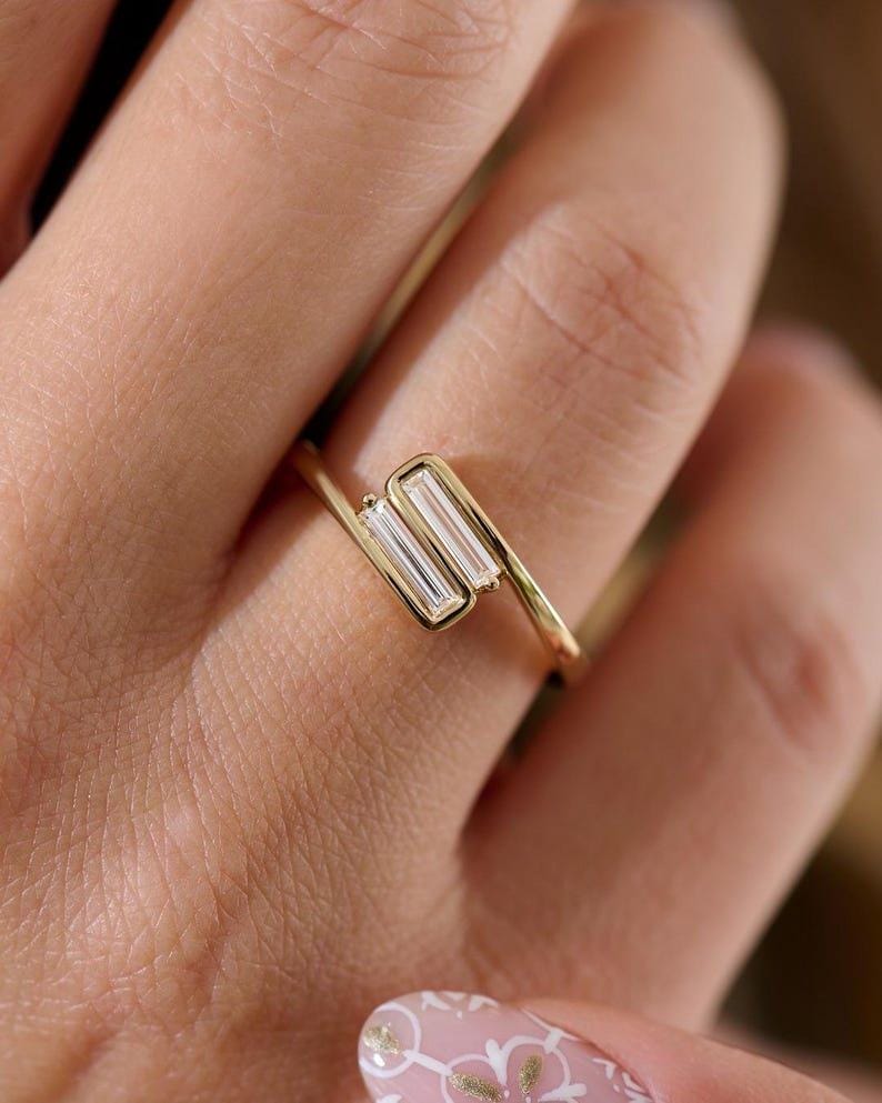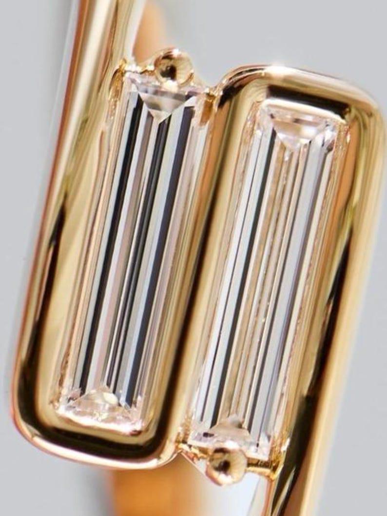 ↣ Elegant baguette-cut moissanite stones with sleek, refined sparkle