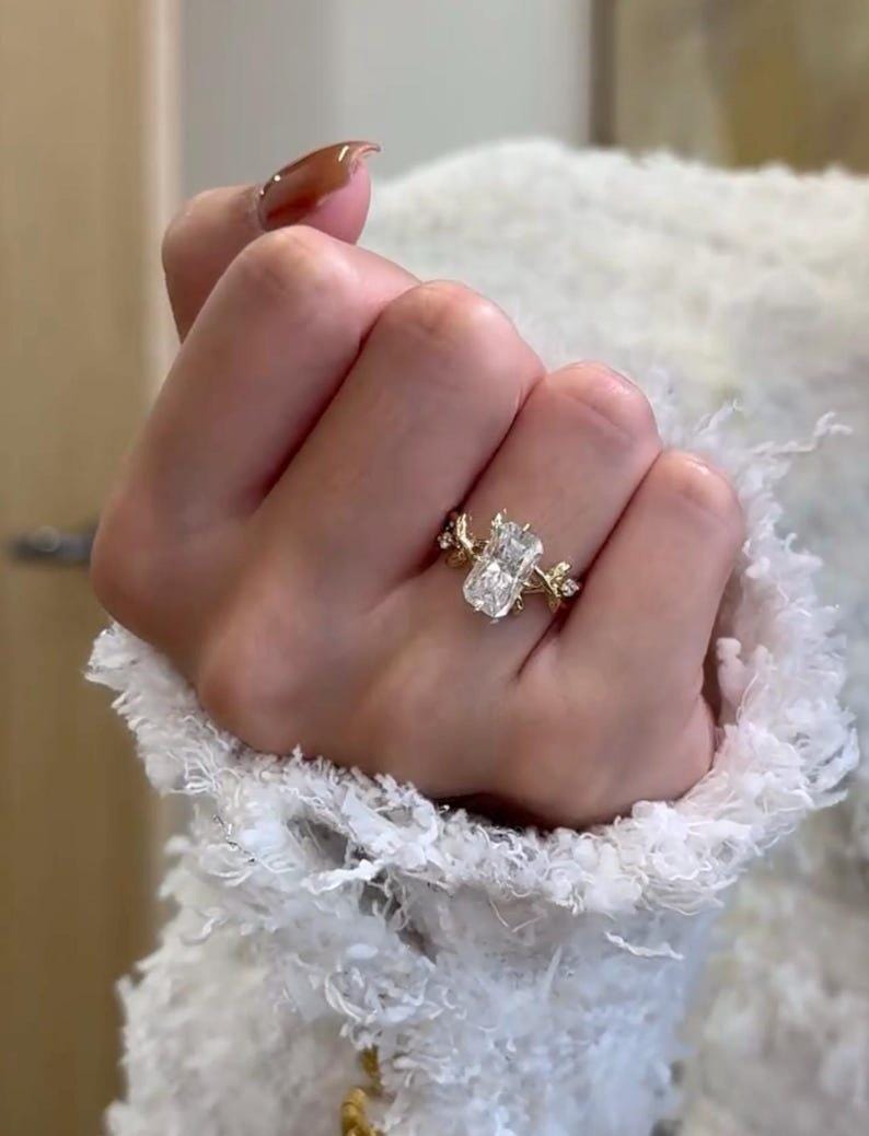 Inspired by nature, the ring features floral design elements that bring a soft, romantic touch to the setting. This artistic detail makes the ring feel both unique and timeless.