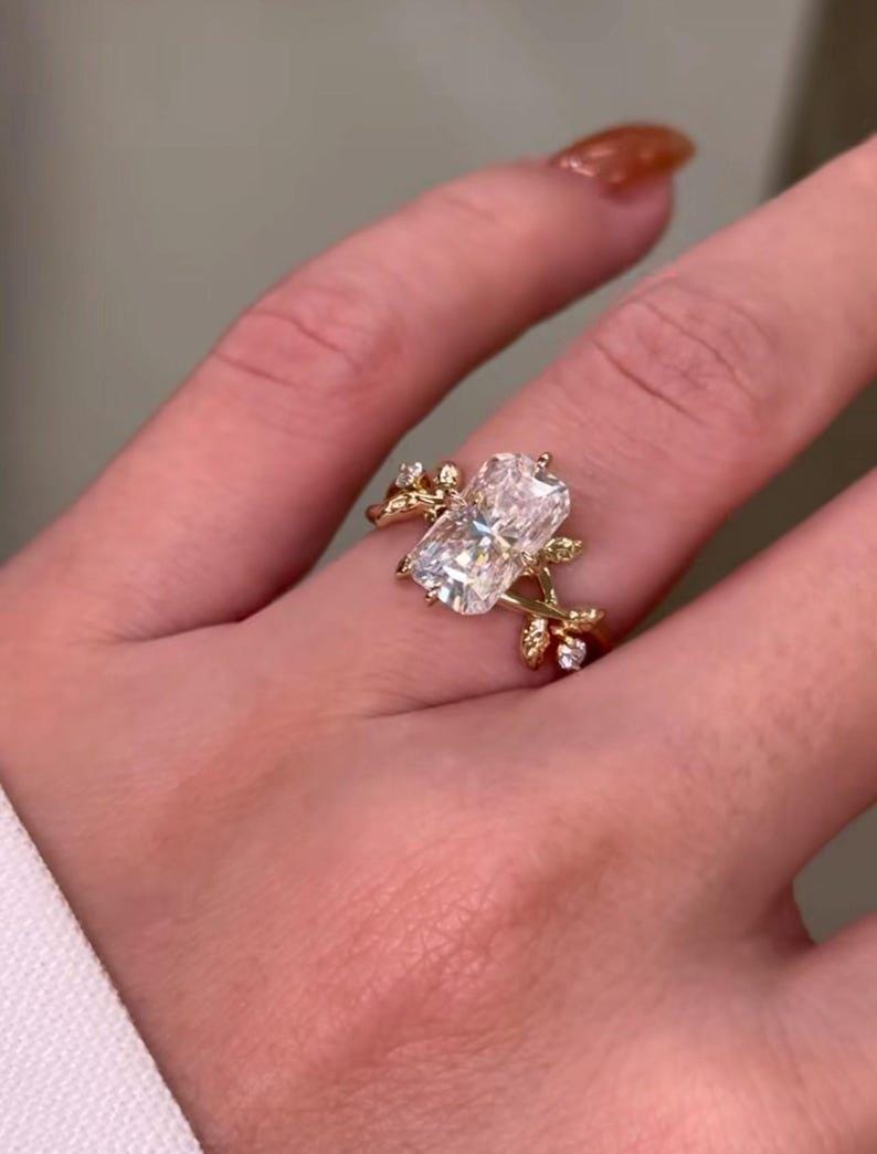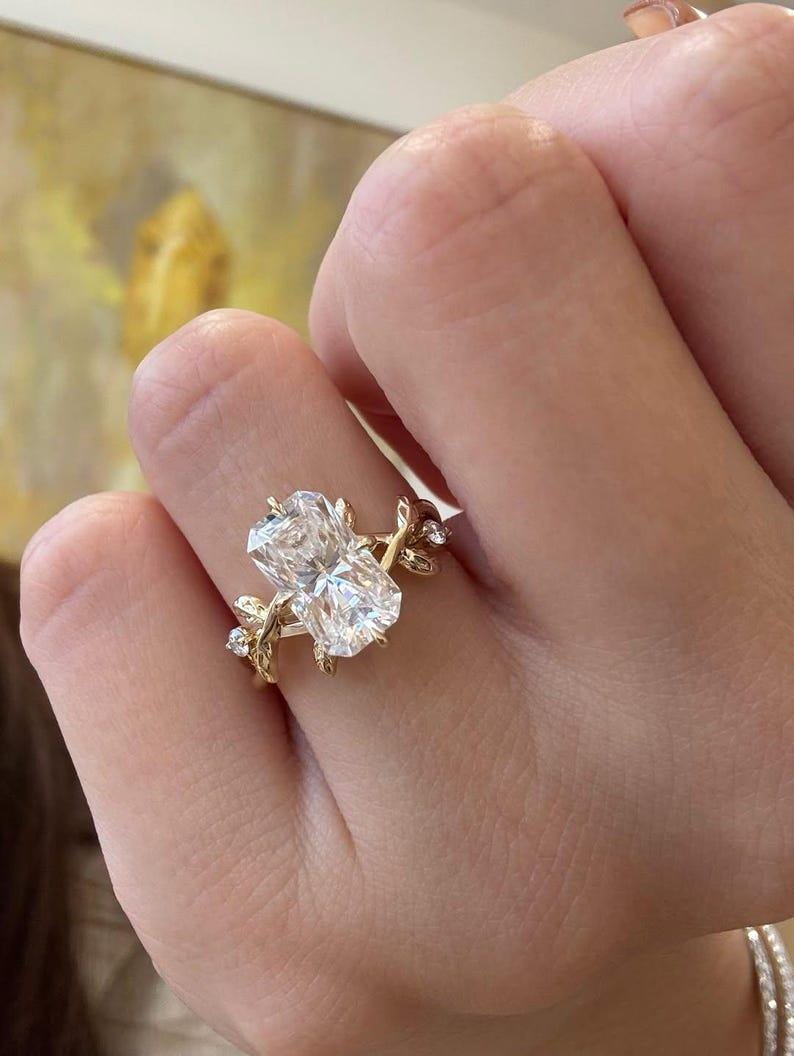 3 CT Elongated Radiant-Cut Moissanite Compass Hidden Halo Floral Ring | Unique Natural Inspired Promise Ring | Engagement Ring