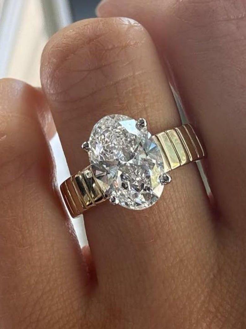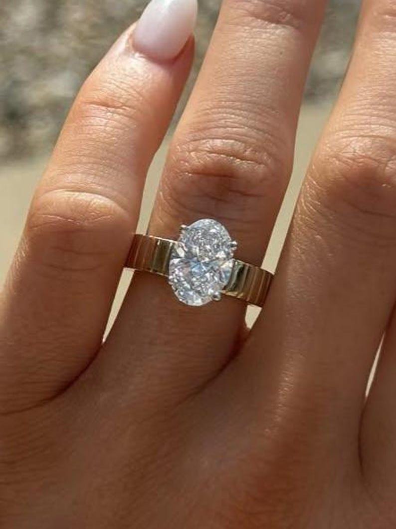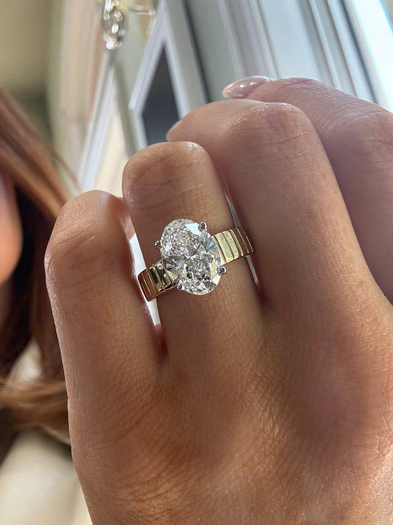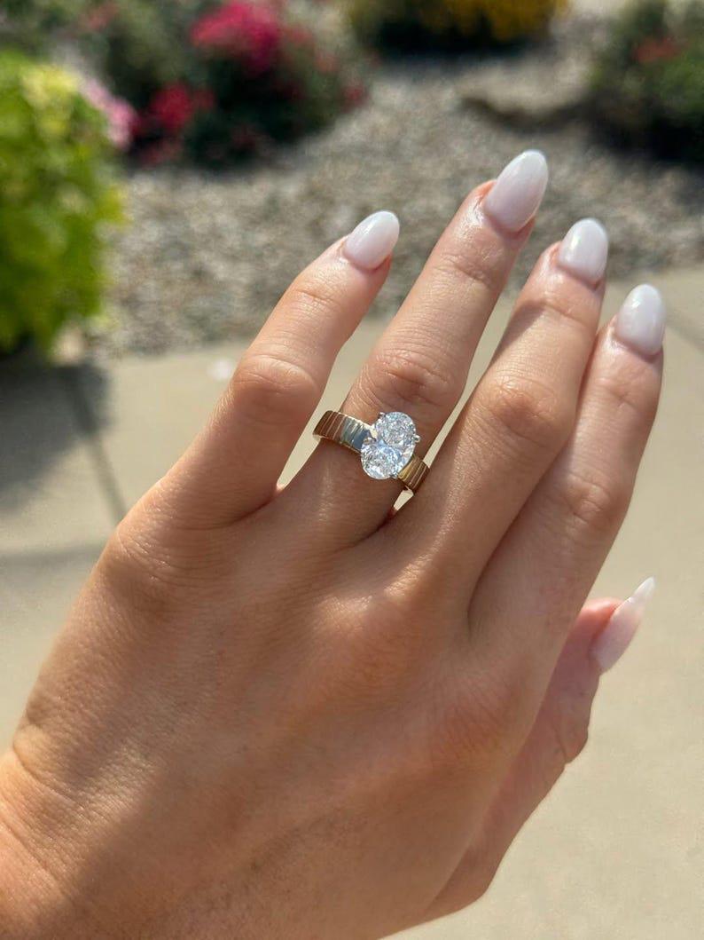 4 CT Oval Cut Moissanite Engagement Ring, Oval Solitaire Moissanite Ring, 14k Solid Gold Ring, Anniversary Gift Ring, Bridal Ring