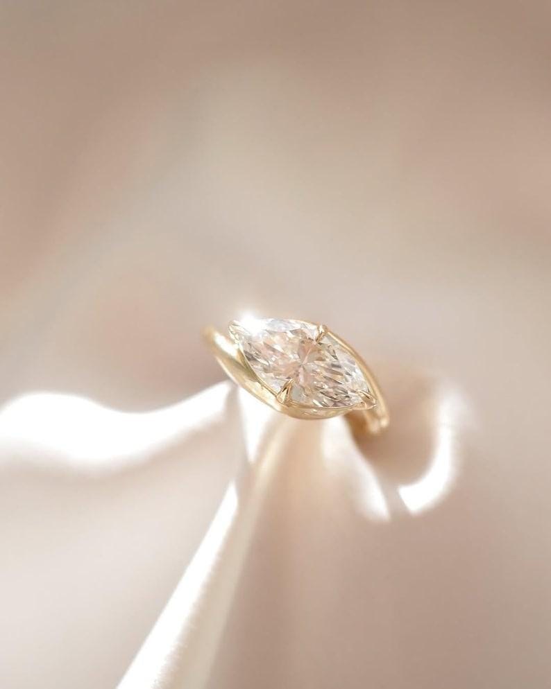Set on a unique rose gold solitaire band, the warm blush tone adds a romantic and luxurious feel that perfectly complements the brilliance of the center stone. The minimalist yet distinctive design allows the marquise stone to remain the true focal point of the ring.