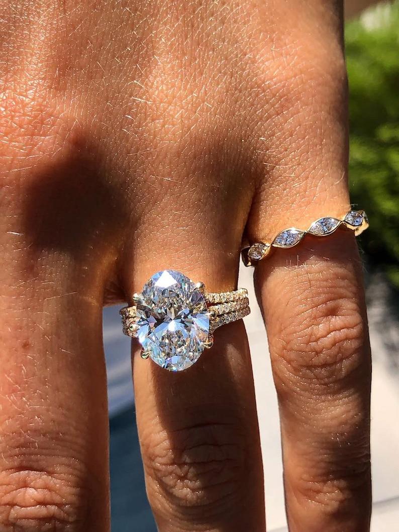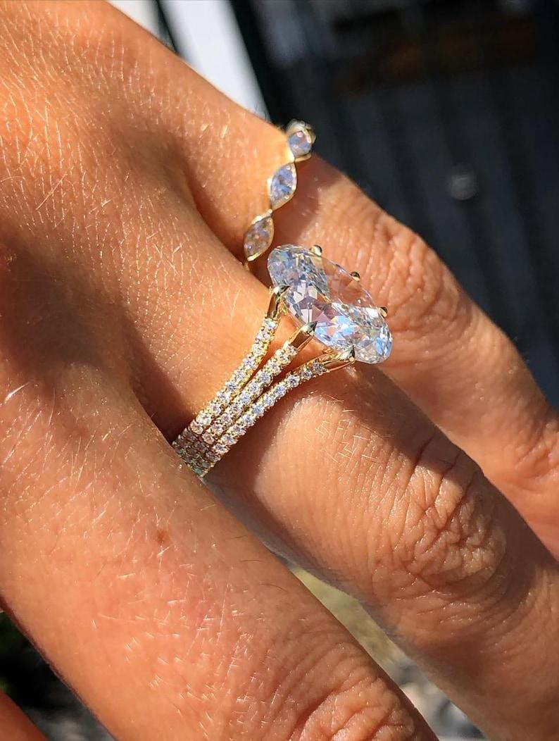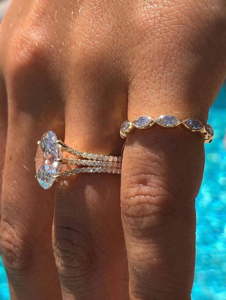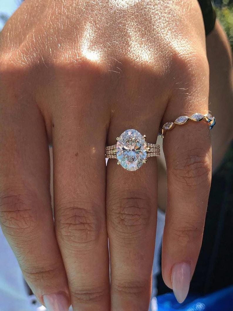 5 CT Oval Cut Moissanite Engagement Ring Three Rows Of Diamond Band , Solitare Wedding Ring , Delicate Women Promise Anniversary Ring