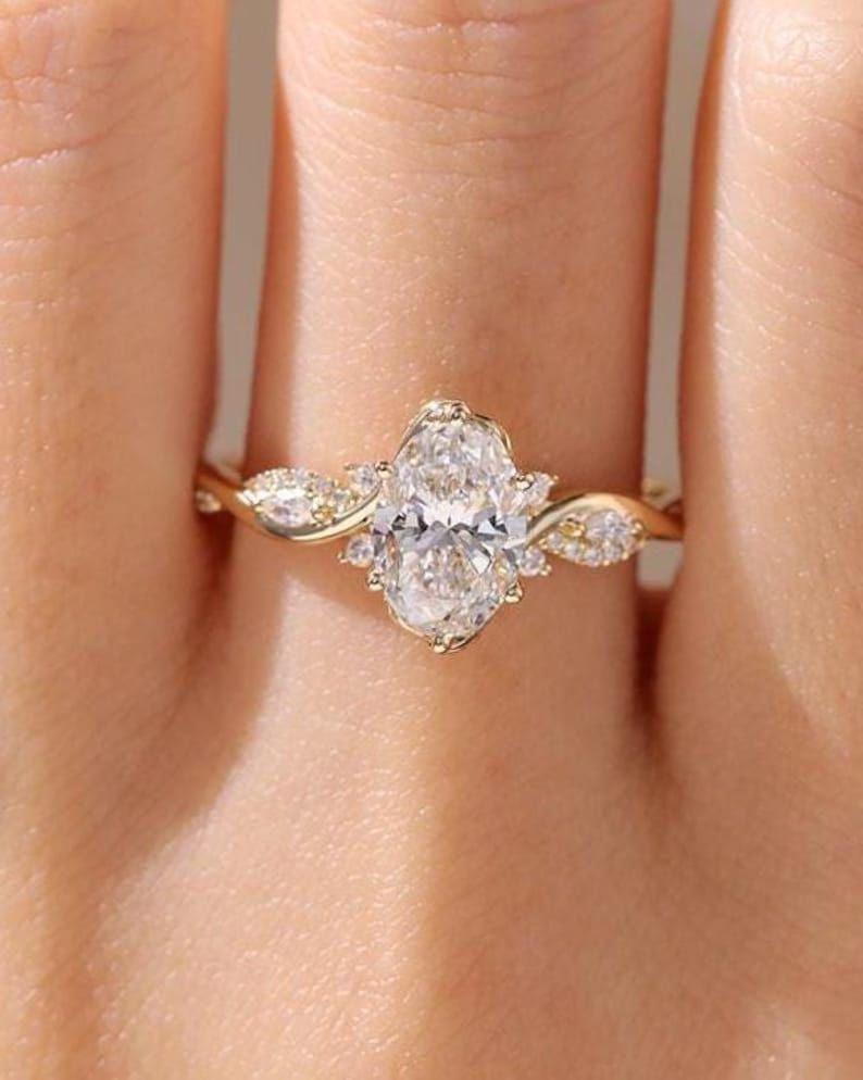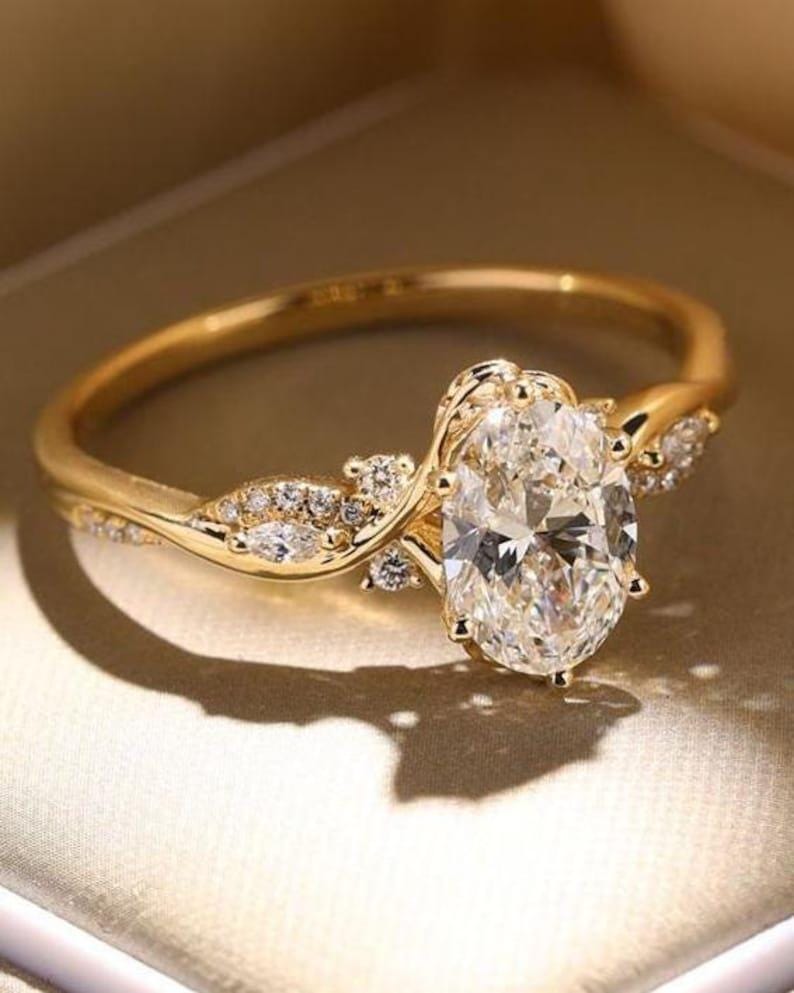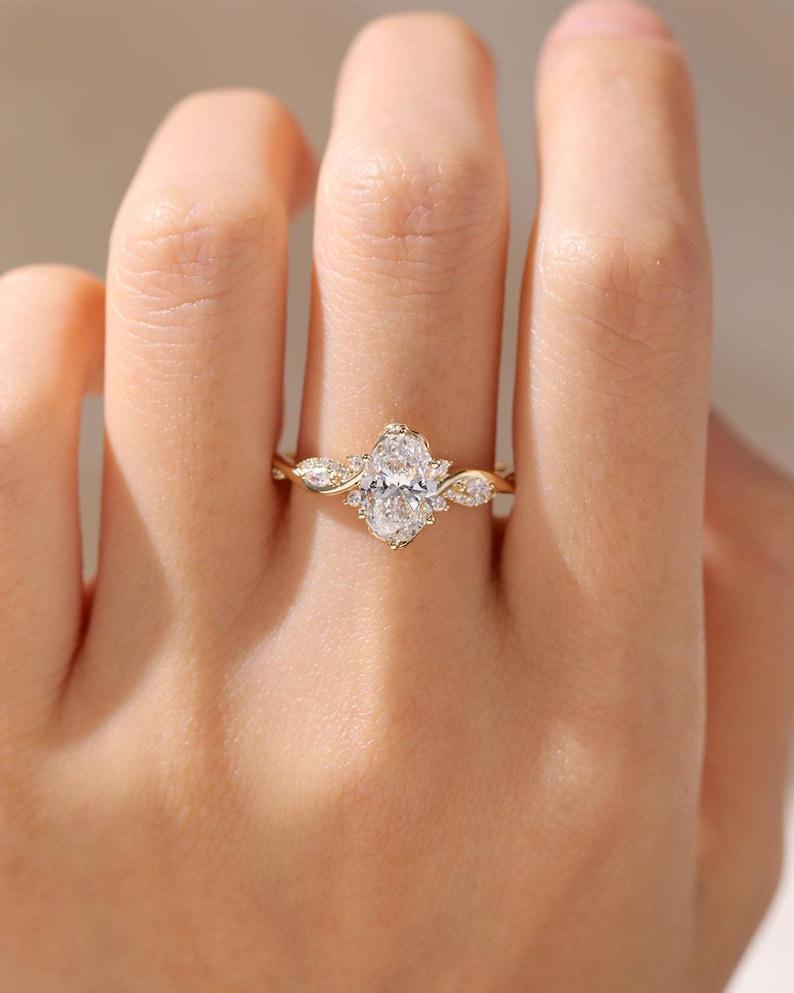 At the heart of this ring is a stunning 2 carat oval-cut moissanite, celebrated for its exceptional sparkle and graceful elongated shape. The oval cut reflects light beautifully, creating remarkable fire and brilliance while giving the finger a slender and elegant appearance.