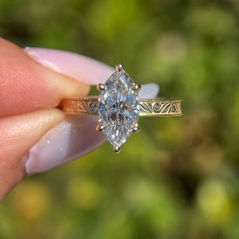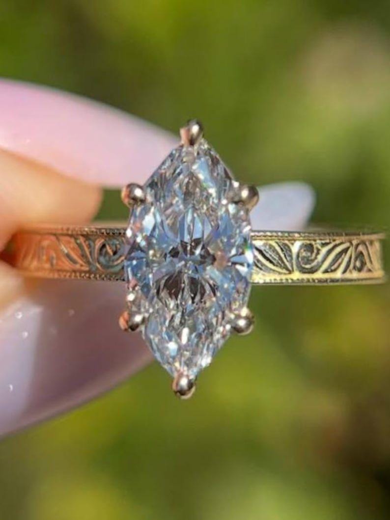 ↣ Dazzling 3 CT marquise-cut moissanite with exceptional brilliance