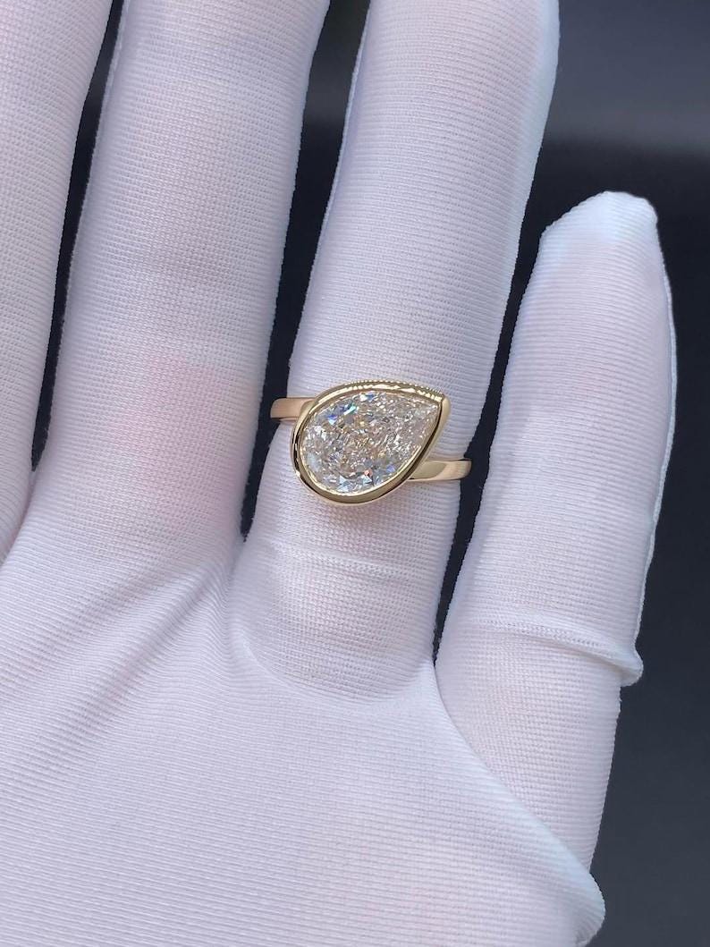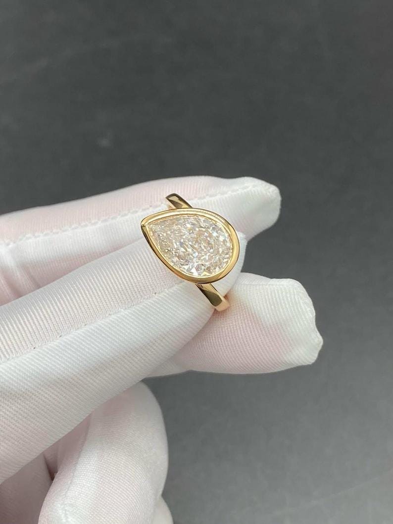 3.5 CT Pear Cut Moissanite Engagement Ring | Promise Ring | Pear Solitaire Ring | Unique Handmade Statement Jewelry | Anniversary Ring
