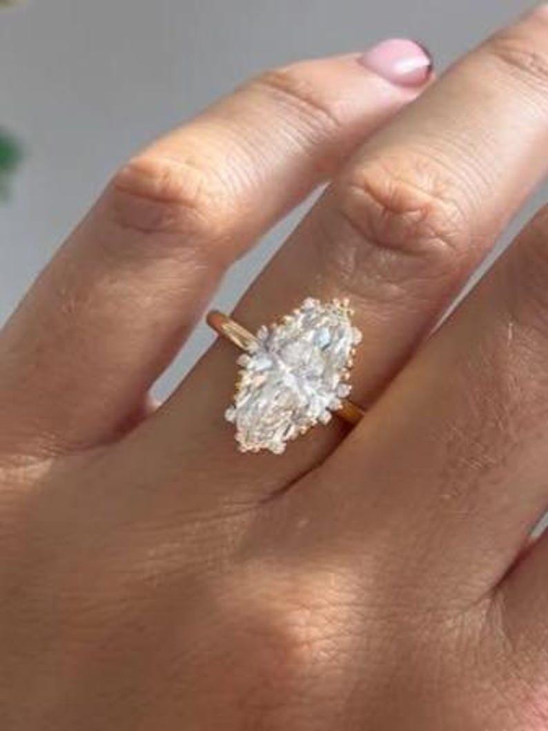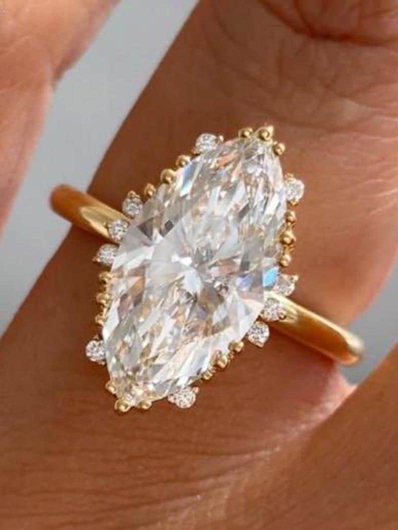 ✨This 4 CT Marquise Cut Moissanite Engagement Ring is a bold and elegant piece designed to capture attention with its brilliance and graceful shape.