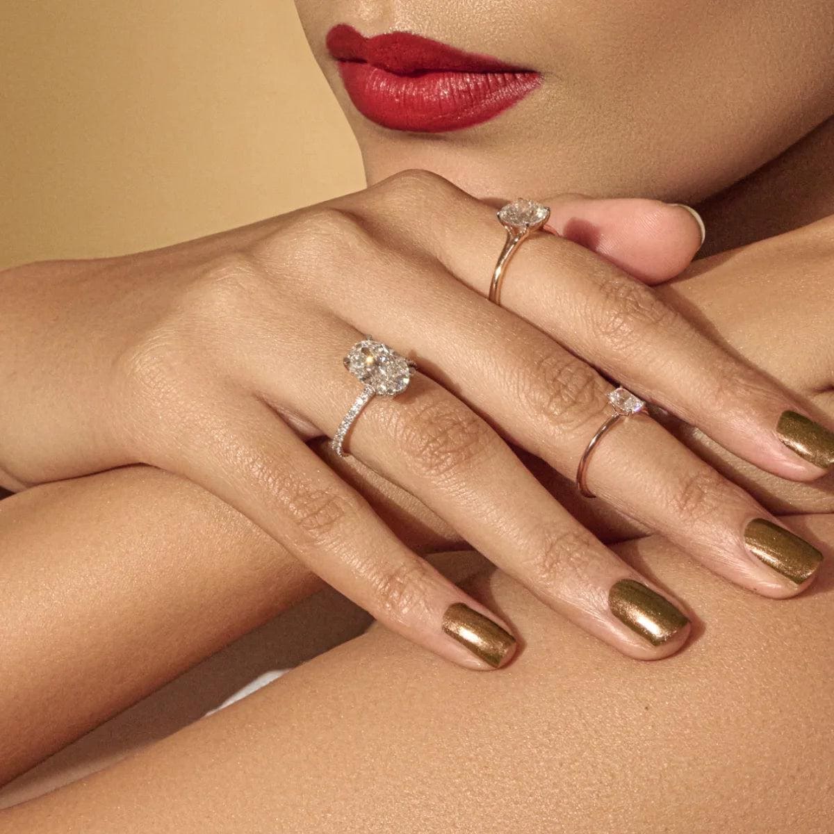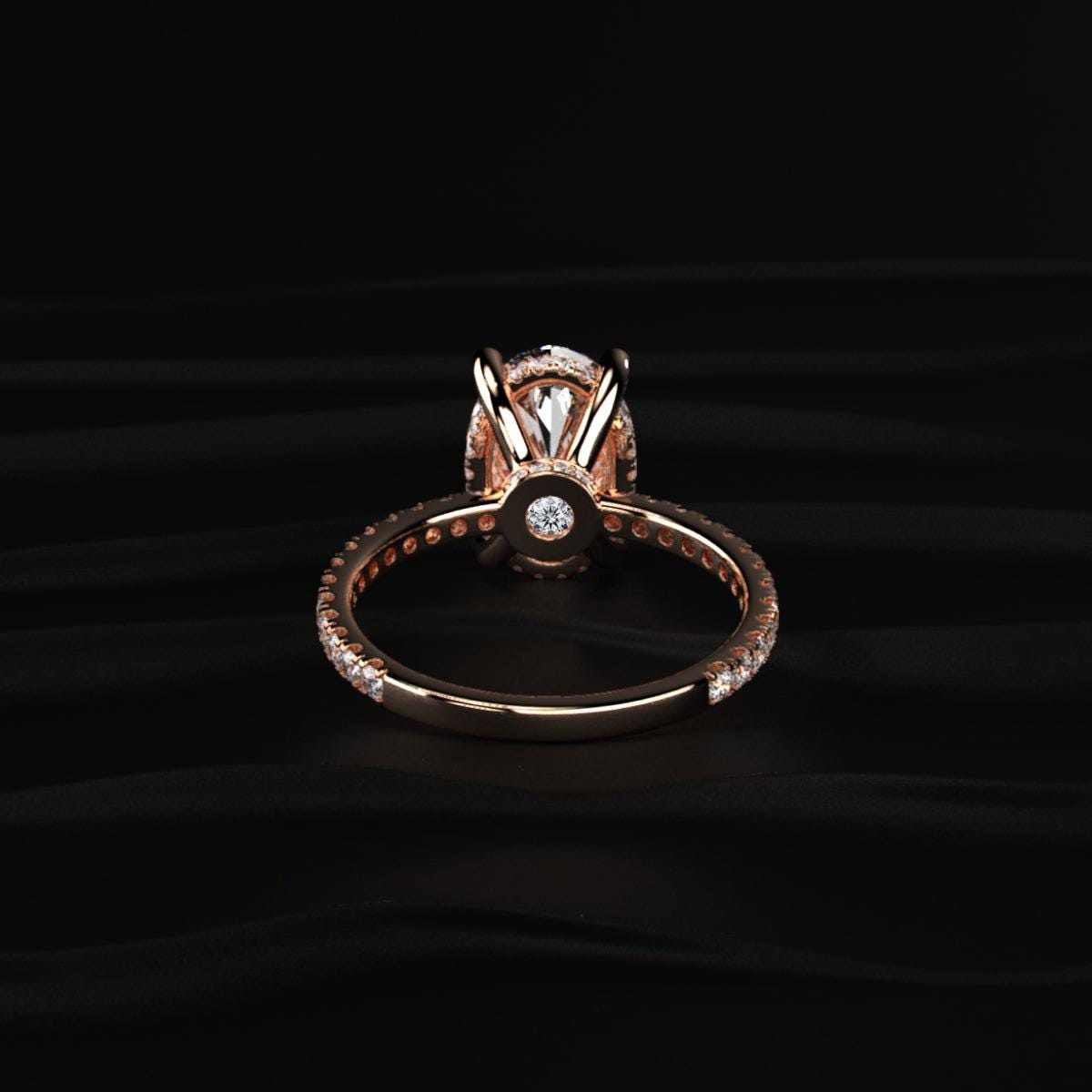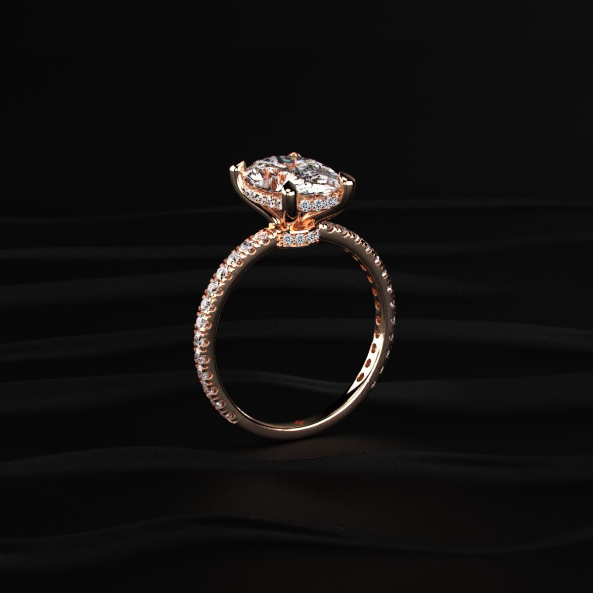 3CT Oval Cut Lab Grown Diamond Engagement Ring Rose Gold Pave Band Hidden Halo Diamond Ring Ethical Diamond Wedding Ring Gift For Her